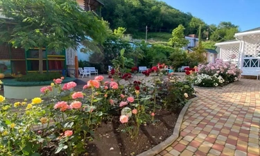 Прекрасный гостевой дом, красивая ухоженная территория. Для детей площадка, есть игрушки. По вечерам была детская анимация.Смена белья, полотенец и уборка в номере проводилась регулярно. На территории есть столовая. Также общая кухня, где можно готовить самостоятельно. Мангальная зона обустроена всем необходимым. По вечерам была детская анимация. В шаговой доступности магазины. Дорога к морю занимала минут 15. Персонал отличный. Нам всё очень понравилось.