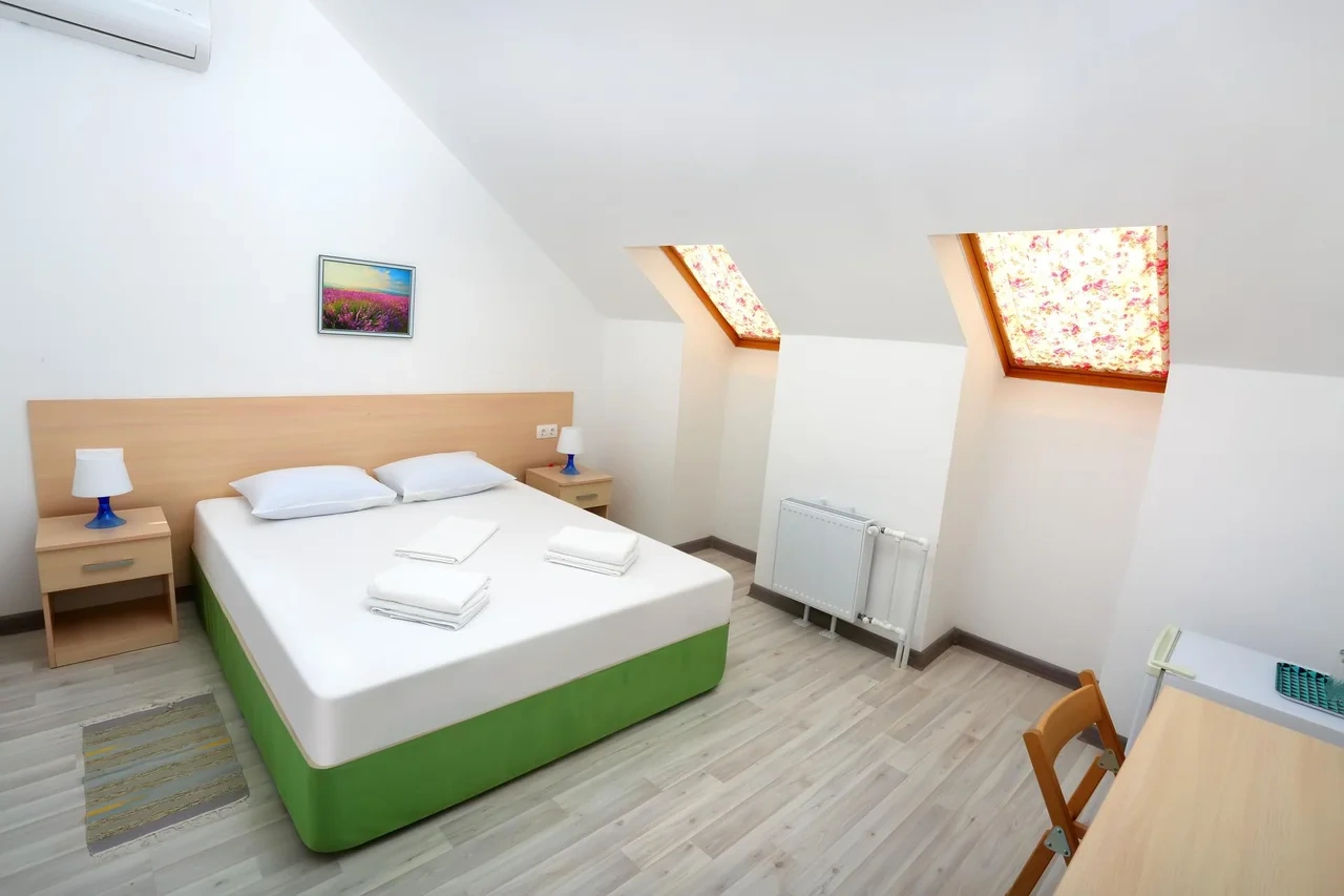Отличный гостевой дом - большая ухоженная территория, много номеров на разный вкус, цены приемлемые. Уборку делают раз в три дня, нам этого было достаточно. Общая кухня большая, посуда есть, но мы, прочитав отзывы, брали свою кастрюлю, чтоб не занимать местные. Из минусов - ночью сильно слышно визги детей во дворе и бег по уличной лестнице. В остальном идеальный вариант для тех, кто следит за питанием и хочет готовить себе сам и для тех, кто хочет отдохнуть от городской суеты в маленьком южном поселении. В нашем номере был кондиционер - просто спасение в жару
