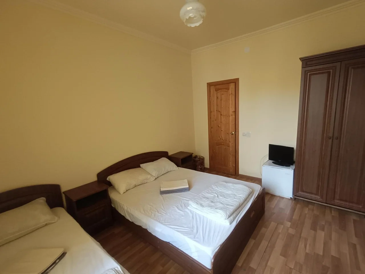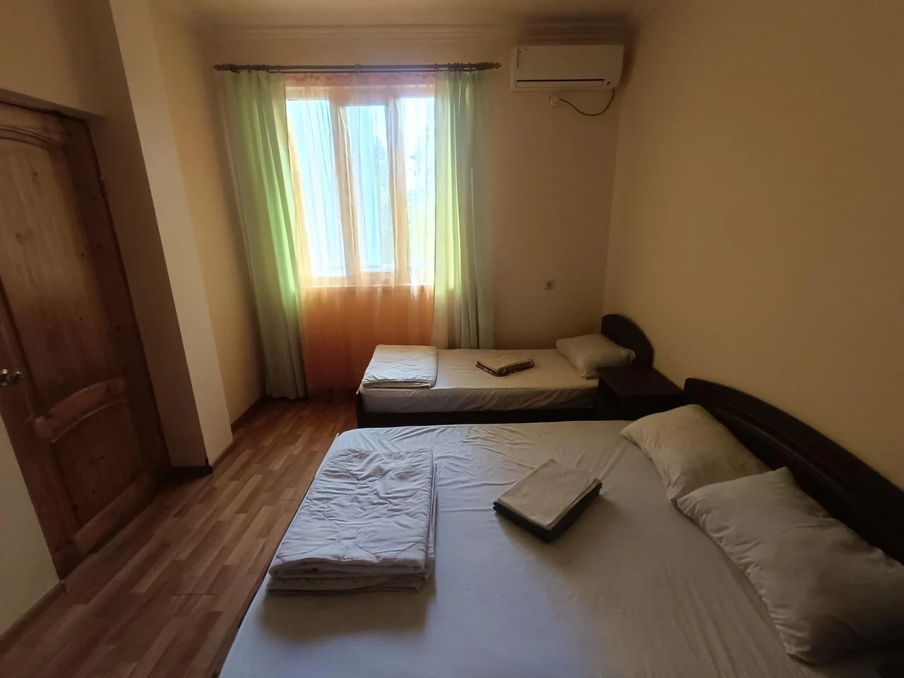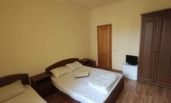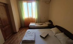 Номер на 1 или 2 этаже с собственной ванной комнатой. В номере одна односпальная кровать и одна двуспальная. Оснащение номера: ТВ, кондиционер, мини-холодильник. Также есть шкаф для одежды и прикроватные тумбочки.