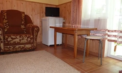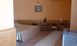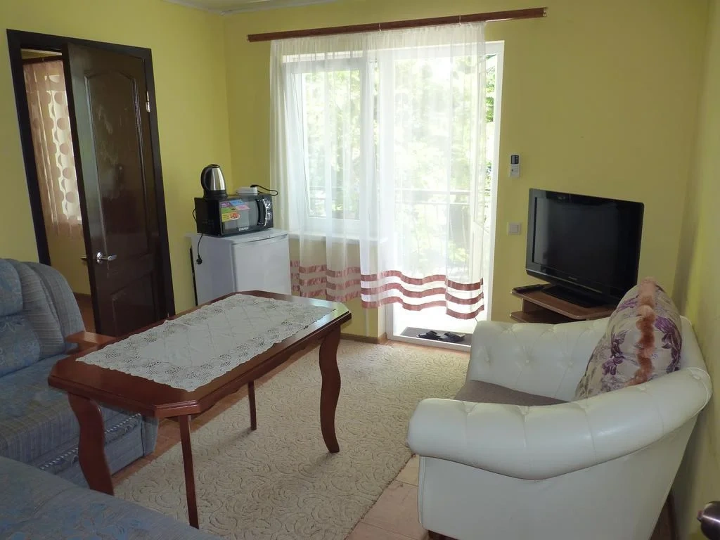 В номере одна двуспальная кровать либо две односпальные. В качестве дополнительного места раскладной диван или кресло. Номер оборудован шкафом для одежды, чайником, кондиционером, телевизором и холодильником. Также в вашем распоряжении балкон и собственная ванная комната. На балконе есть стол, стулья. С балкона открывается вид на море.