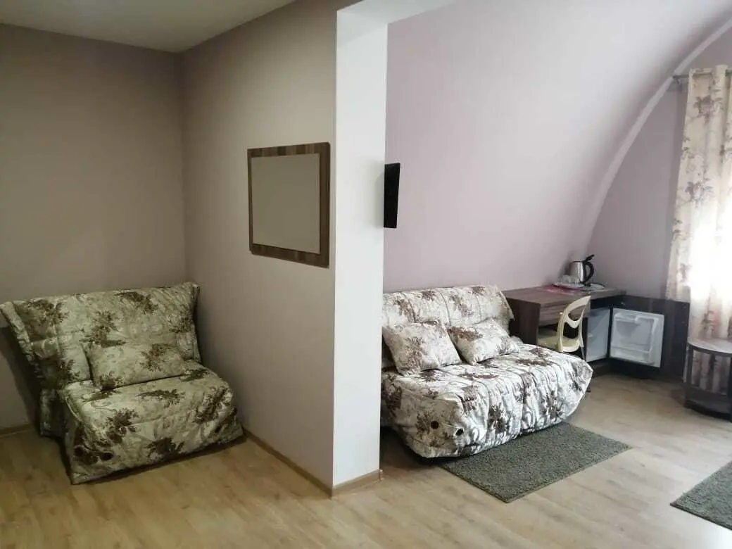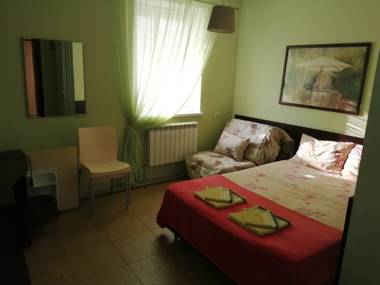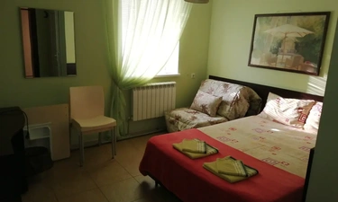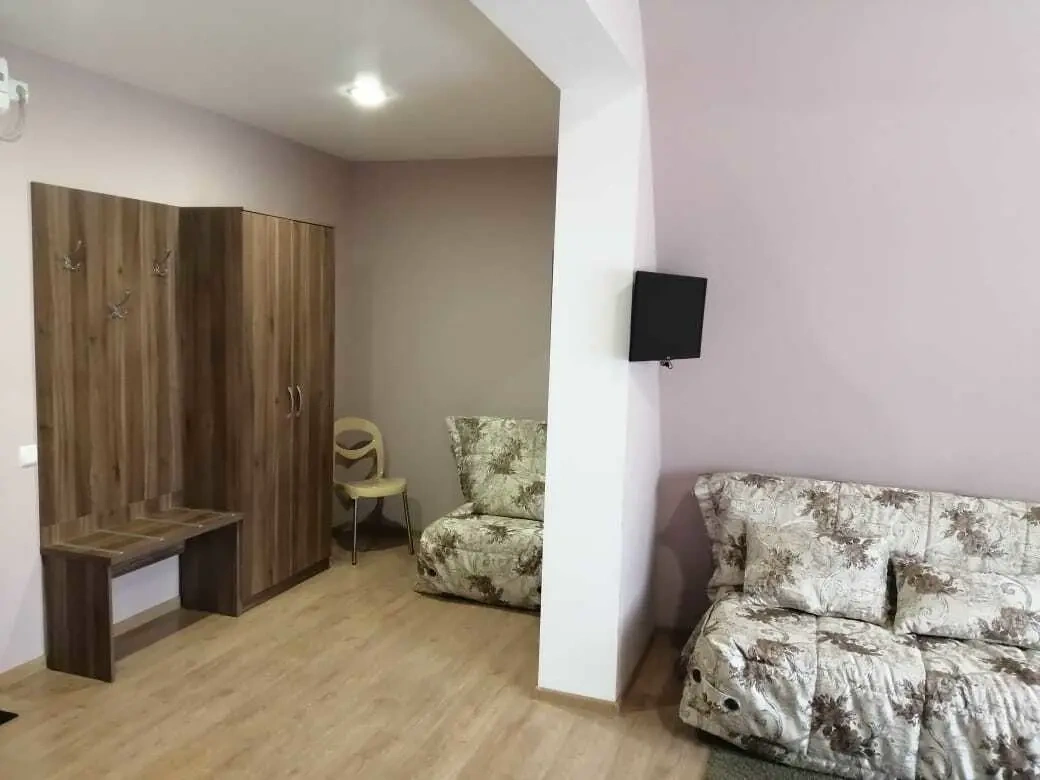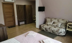 Однокомнатный номер, общей площадью 16м2 , с полным санузлом (умывальник, унитаз, ванна), рассчитанный на проживание двух/трех человек. Дополнительное место - 500 руб. чел.