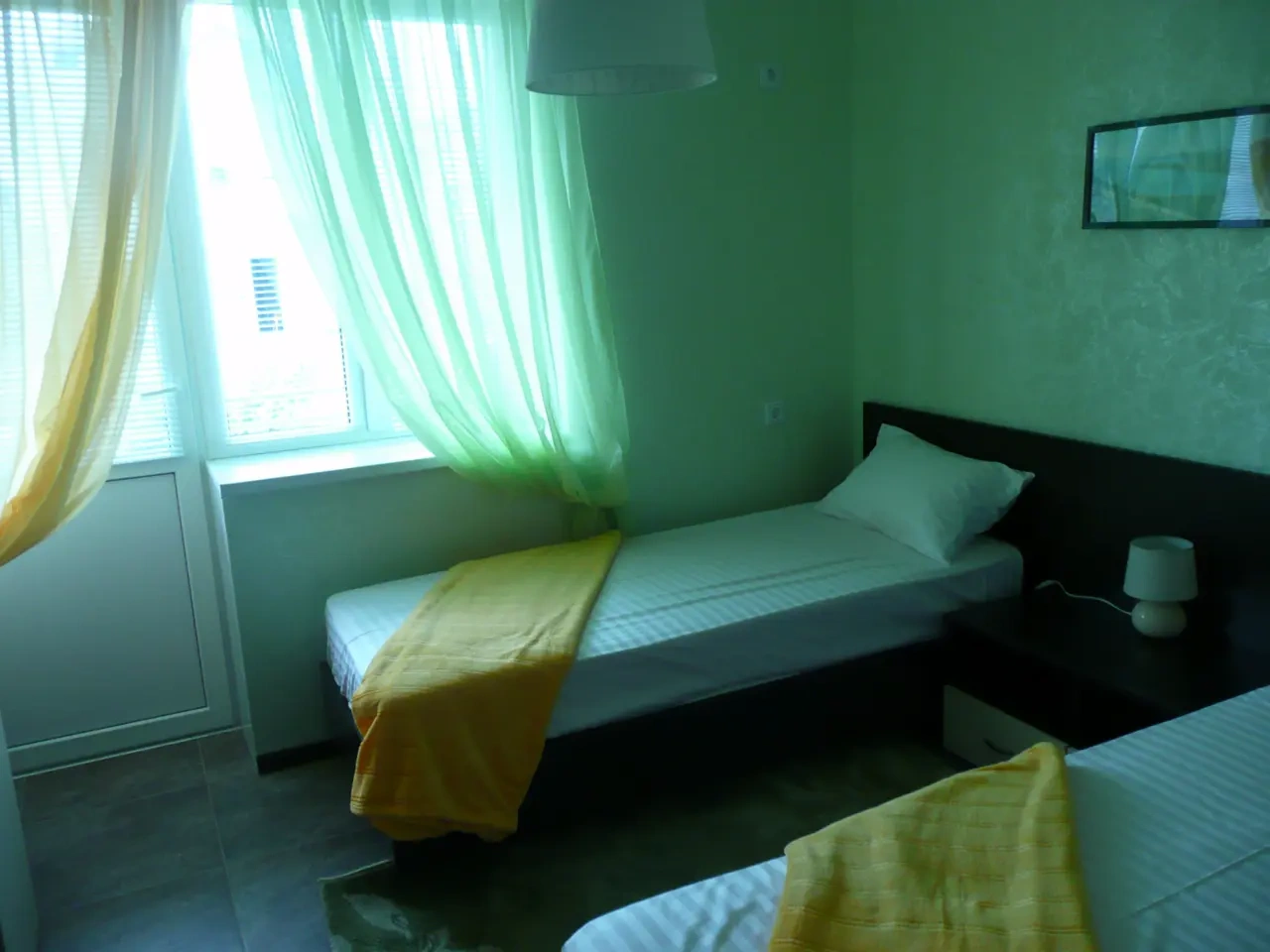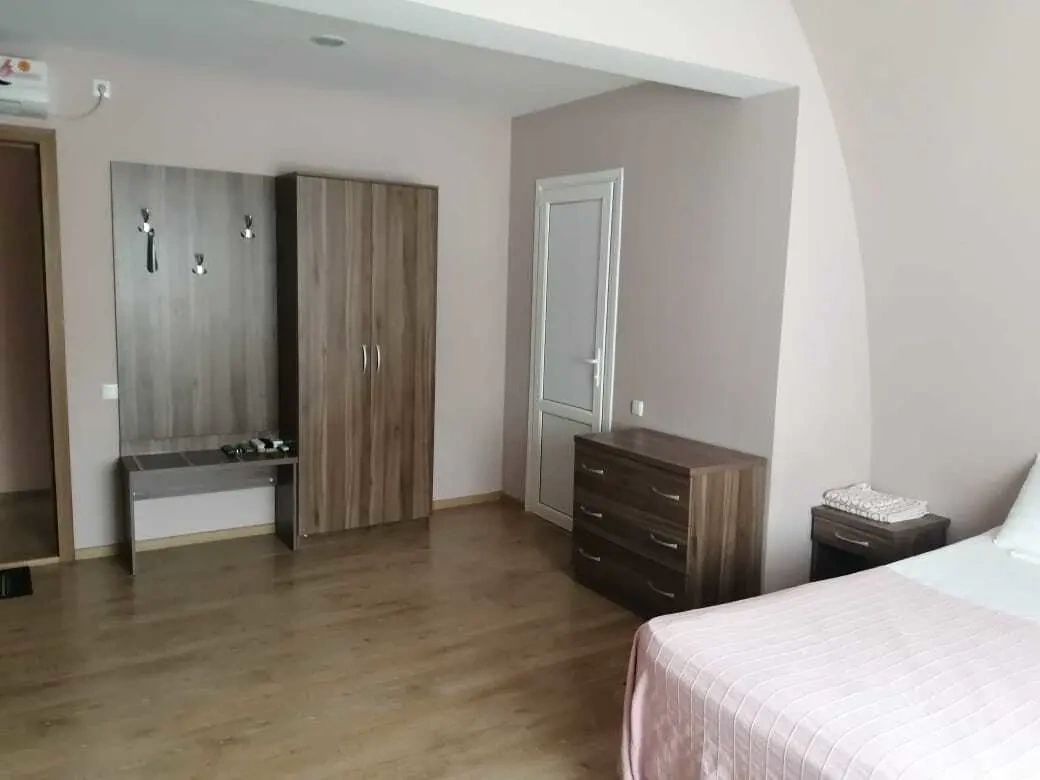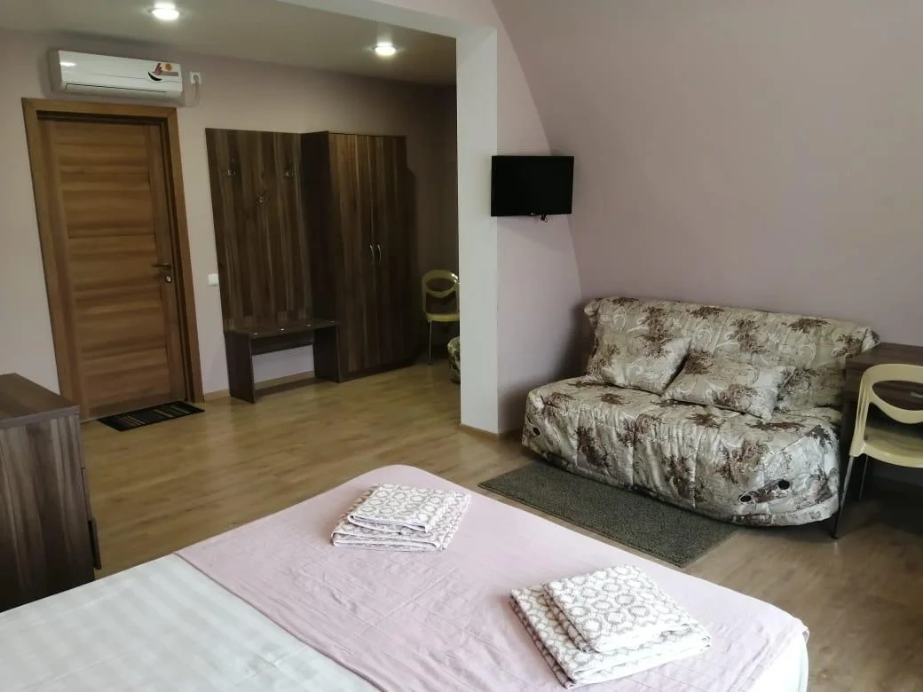 Трехкомнатный номер, предназначенный для отдыха большой семьи. Он состоит из 2х раздельных спален и гостиной с кухонным оборудованием, телевизором, также в номере есть полноценный сан.узел, стиральная машина, гладильная доска, вся необходимая мебель и постельные принадлежности.WiFi. Номер рассчитан на проживание 8 человек.