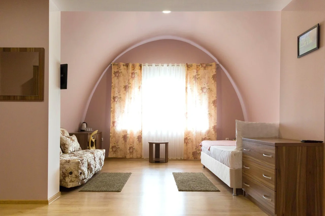 Номер однокомнатный, общей площадью 28м2 с полным санузлом, без балкона, рассчитанный на проживание 4х чел.,возможно доп.место. Дополнительное место 500 руб. человек.