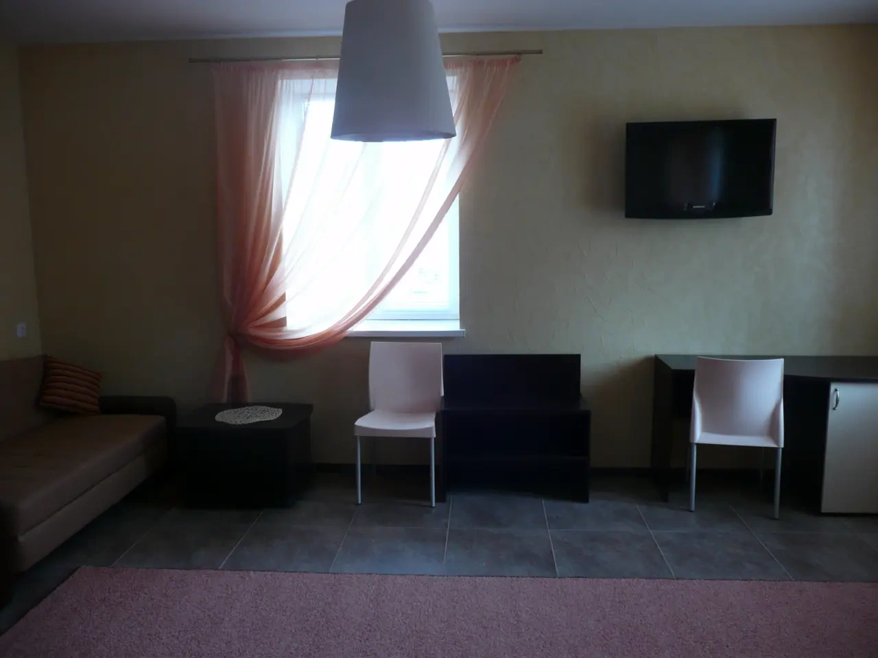 Люксы имеются 2х видов: однокомнатный и двухкомнатный. Номер общей площадью 28м2 с полным санузлом (умывальник,унитаз, ванна), рассчитанный на проживание 4х человек. Дополнительное место 500 руб. человек.