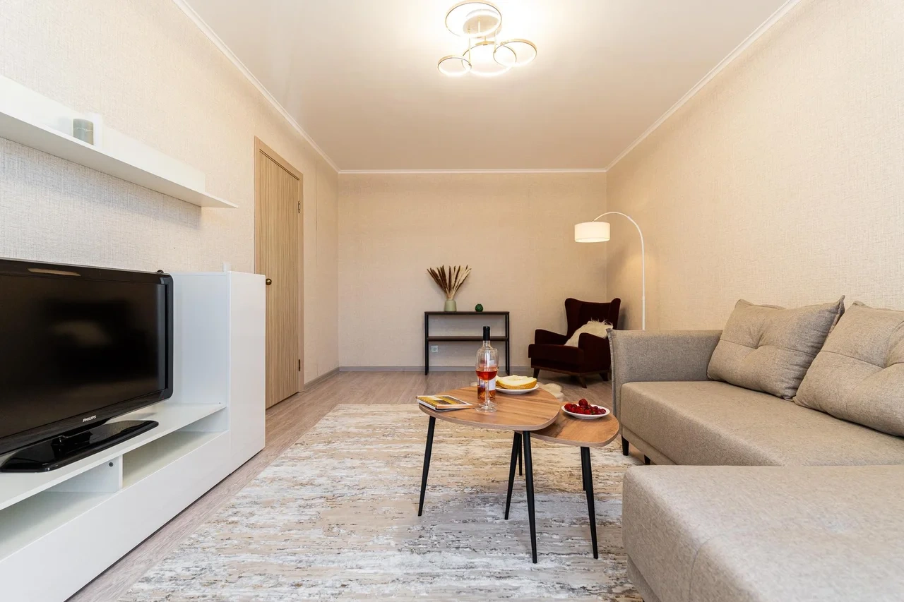 Также в квартире есть кухня со всей необходимой техникой. Размещение до 4 человек. Двуспальная кровать и диван (2+2). Мы рады гостям с детьми