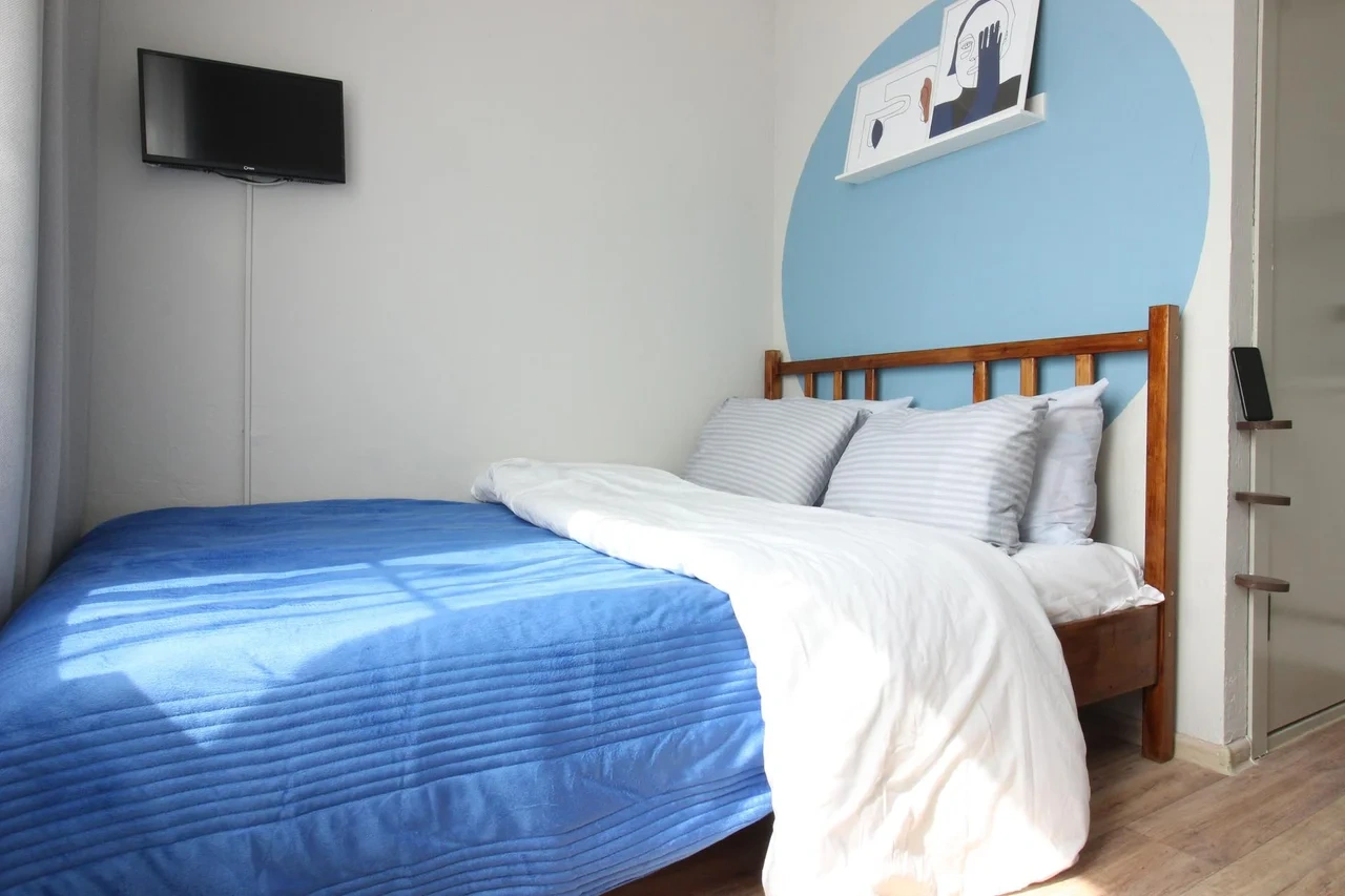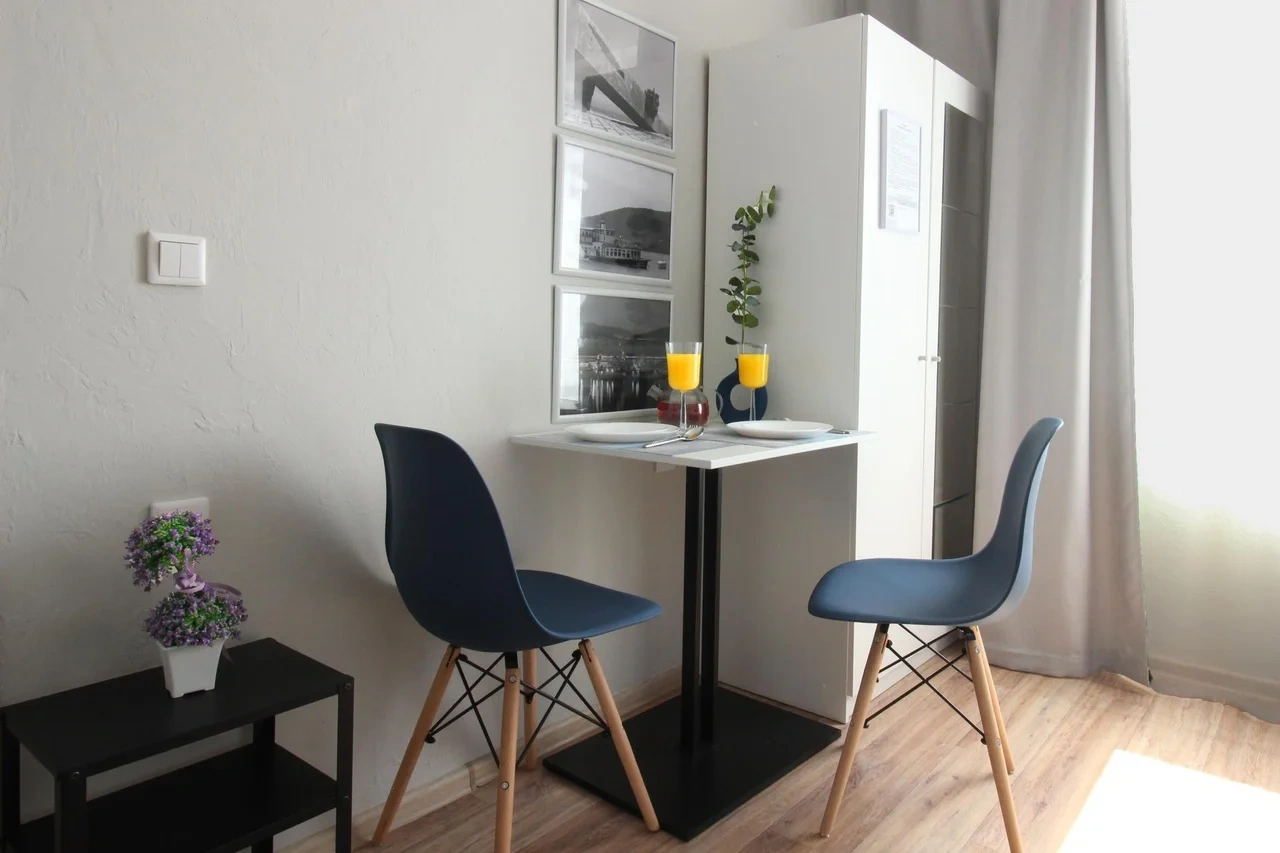 Комната-она же кухня со всем необходимым. Посуда, микроволновая печь, телевизор (20 каналов),интернет, стол+3 табуретки, холодильник, шкаф, кровать двуспальная, тумбочка, раскладушка, сушилка, обувница. Сахар, соль, перец +моющее средство для посуды, Губка. Чистое постельное бельё+полотенца, в шкафу дополнительное одеяло и бельё. В общем коридоре стиральная машинка+порошок. Швабра, ведро и щётка. При желании можно в комнате прибраться. Шикарный внутренний двор, аптека, пятёрочка, сдек. Калитка для входа на магните, ключи получила по прибытии. Администратор всегда на связи. Т. К. Приехали рано утром с детьми, заранее договорилась о раннем заезде. (Жильё было уже свободным). Благодарю за предоставленное жильё. Рада, что снова остановились у Вас! Успехов и хороших постояльцев.