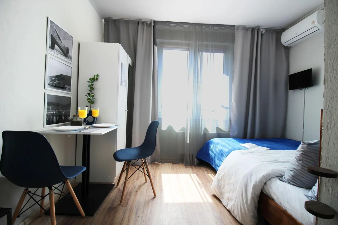 Отвратительные апартаменты, никому не рекомендуем! Фото в объявлении не соответствует действительности. На фото видно море, по факту - 1й этаж, вид из окна во двор с парковкой. До моря пешком идти минут 45. Кровать скрипит, постельное белье - один комплект на все время проживания (мы должны были жить 5 дней). На кухне не было ни чая, ни кофе. В ванной не было гигиенических средств для принятия душа (2 одноразовых пакетика геля для душа на все 5 дней проживания). Пол в душевой кабинке и самом санузле ОЧЕНЬ скользкий, с супругом чуть не упали несколько раз. Очень огорчило отсутствие горячей воды и водонагревателя! Пытались мыться в холодной воде. Со слов хозяина апартаментов, горячую воду должны были дать вечером, а по факту висело объявление на подъезде об ее отключении на месяц. На второе утро проживания из слива душевой кабинки выбрался травленый таракан - лежал полуживой кверху ножками. Плюс очень яркий запах канализацией в санузле. Что касаемо всего остального: гладильная доска сломана, телевизор висит крайне неудобно и очень маленький - смотреть невозможно, плюс он постоянно подвисал, сигнал вай-фай постоянно отваливался, за кроватью грязь (беруши, средство для травли тараканов, пыль, таблетки). Спать невозможно от того, что на кондиционер с верхних кондиционеров каждую секунду капает вода.