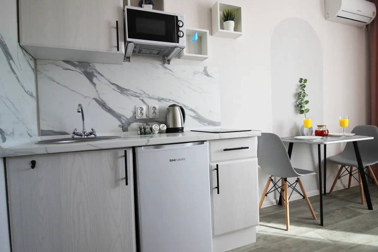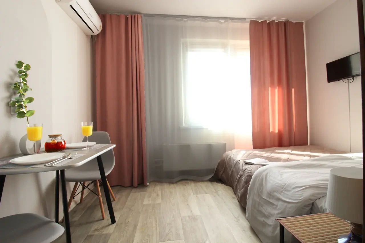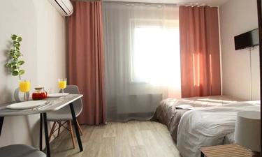 Студия 16 кв.м на первом этаже. Рядом удобная транспортная развязка, ост.транспорта , спортивный комплекс,южный рынок и магазин "Магнит" и "Лента". В подъезде, лифте , на этажах ведется видеонаблюдение. В студии есть все удобства для уютного проживания: посуда,микроволновка, электрочайник, стиральная машина, высокоскоростной интернет, цифровое телевидение ,двуспальная кровать с шикарным ортопедическим матрасом .Отчетные документы . Ждем Вас в гости !!! Цена зависит от : срока проживания, количества человек , выходных и праздничных дней .. До моря 10 минут пешком.