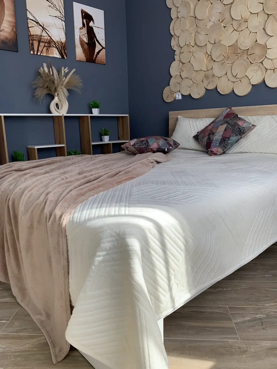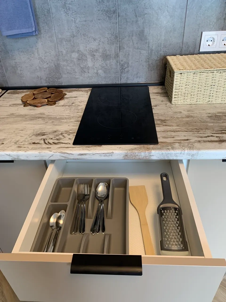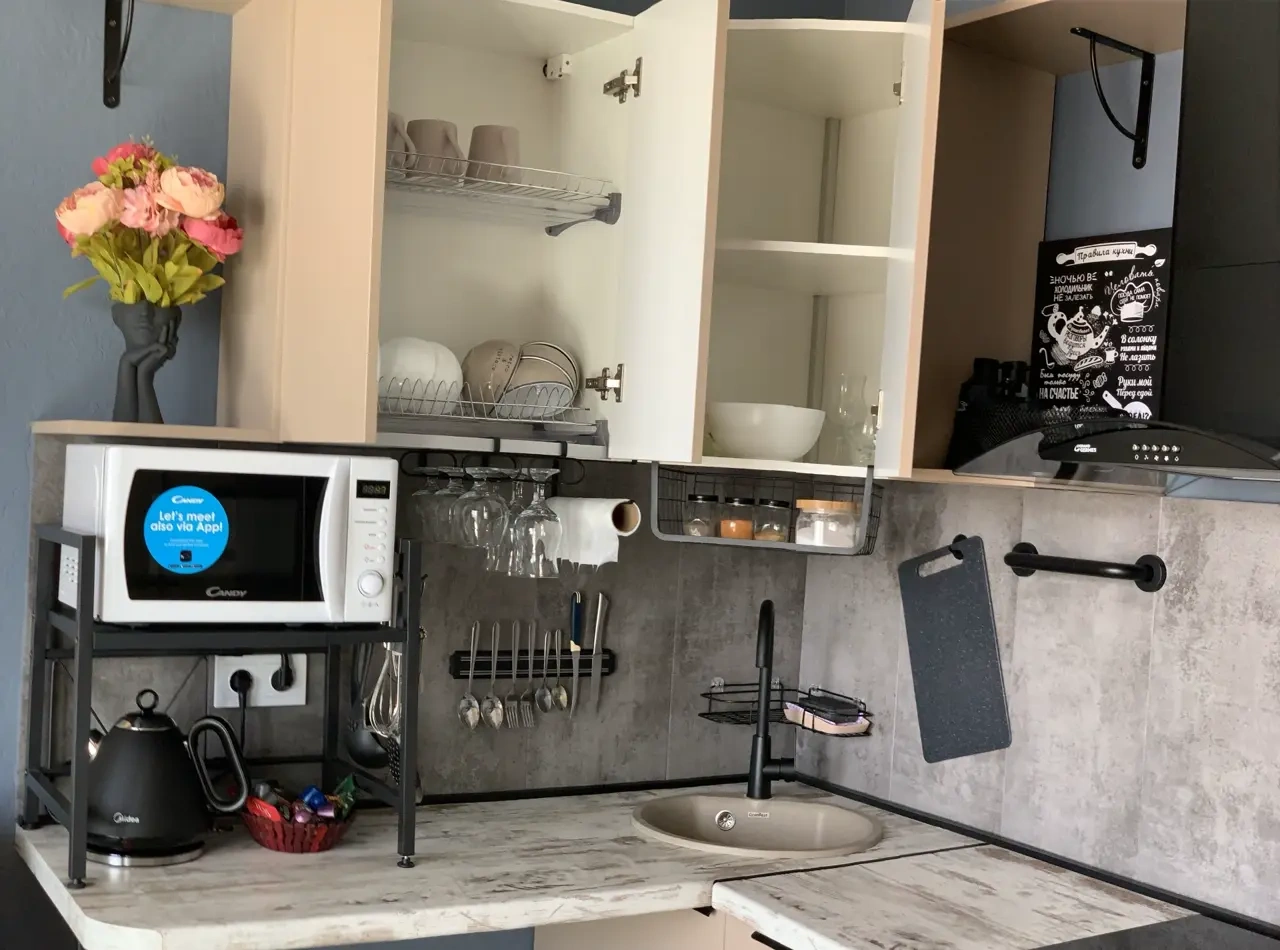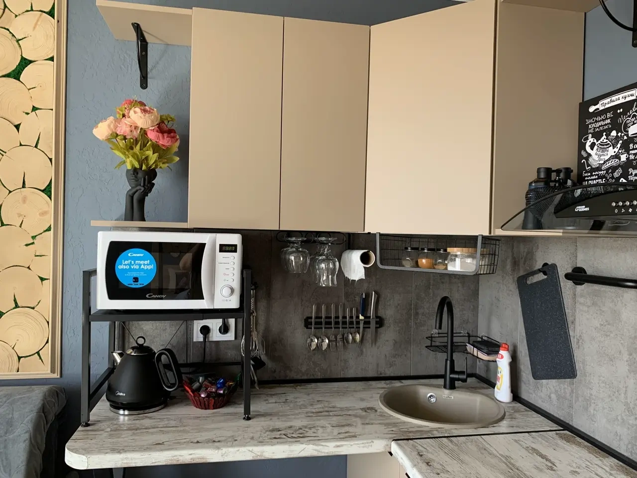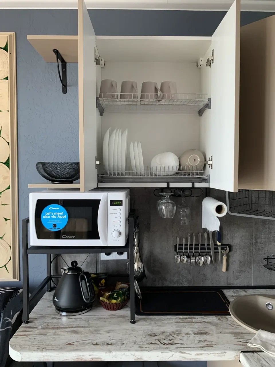 В квартире есть все необходимое для комфортного отдыха после насыщенного впечатлениями дня:двуспальная кровать, диван, на котором свободно разместятся 2 человека, шкаф, smart ТВ, кондиционер, фен, утюг, гладильная доска, стиральная машина, холодильник, электроплита, посуда, микроволновая печь, кофемашина. Своим гостям мы оставляем сахар, соль специи, чай и капсулы ароматного кофе.