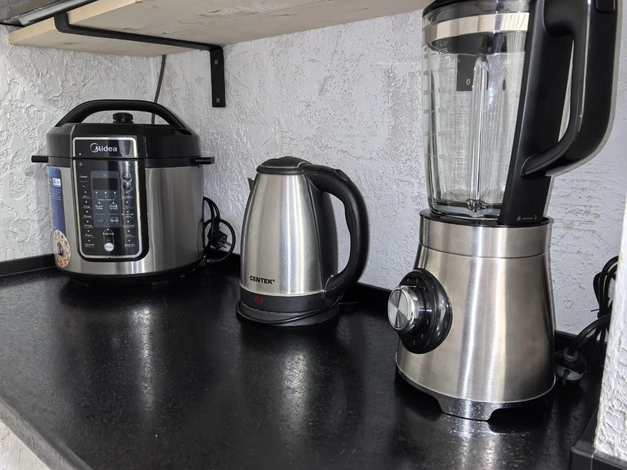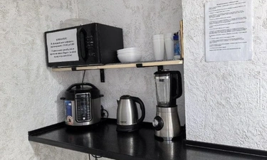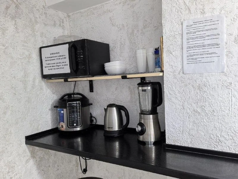 • Кухонная зона - микроволновка, холодильник, бойлер с горячей и холодной водой, столовые приборы, кофемашина, мультиварка, бленедер.