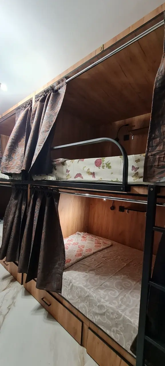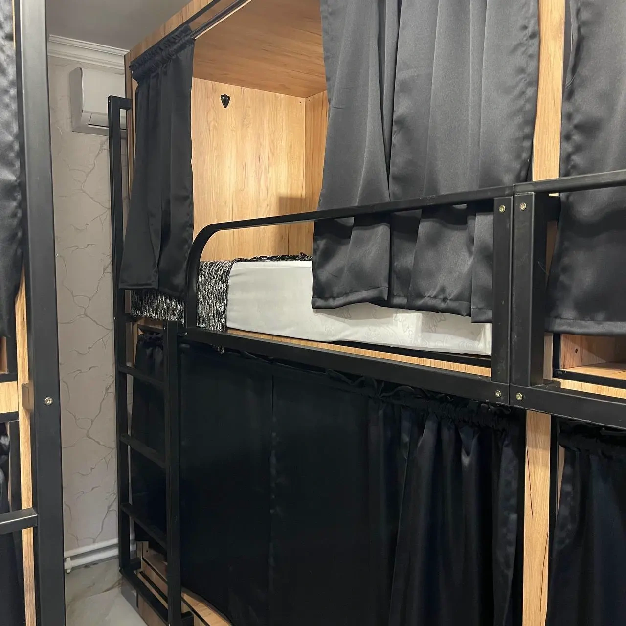 • Каждая капсула оснащена - чистым постельным бельем, подушкой, пледом, светильником, полочкой, розеткой, в некоторых вентиляцией (с кнопки включается и выключается)