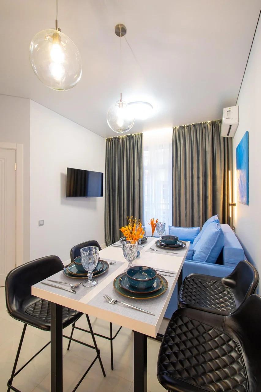 Квартира в современном жилом комплексе ЖК "КУРОРТНЫЙ" От квартиры до моря 15 минут прогулки. Вокруг благоустроенная территория, рядом детская площадка, парковка.