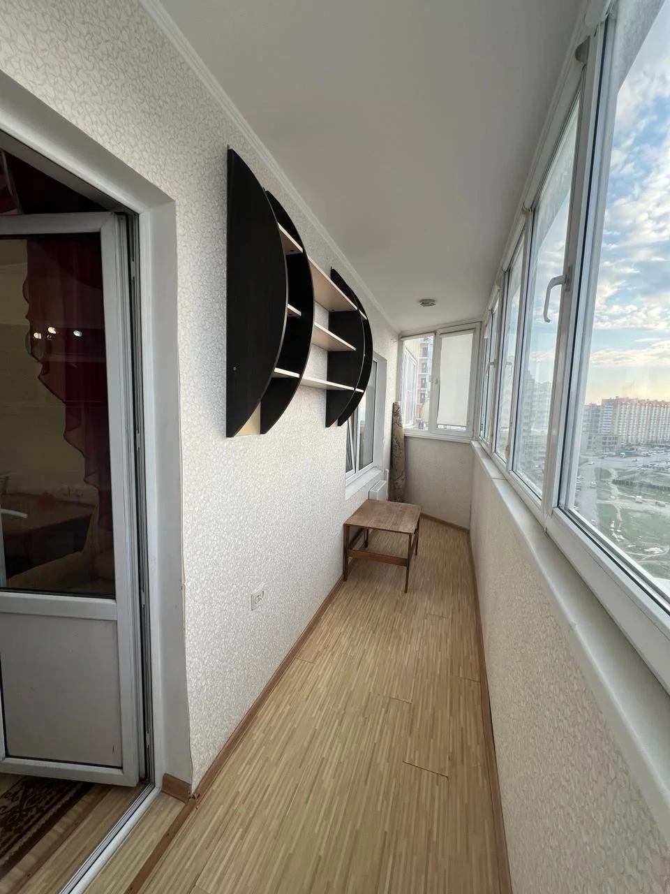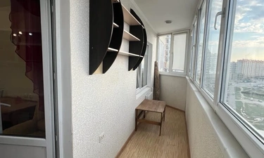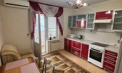Просторная, поместится семья с двумя, тремя детьми. Большая лоджия.