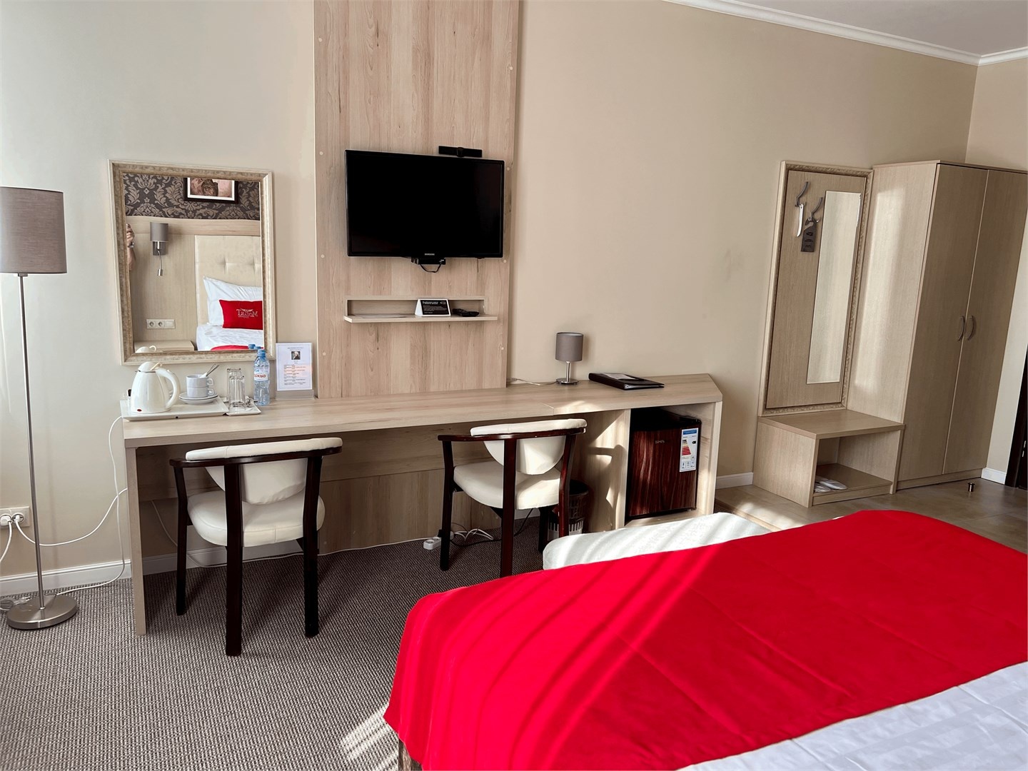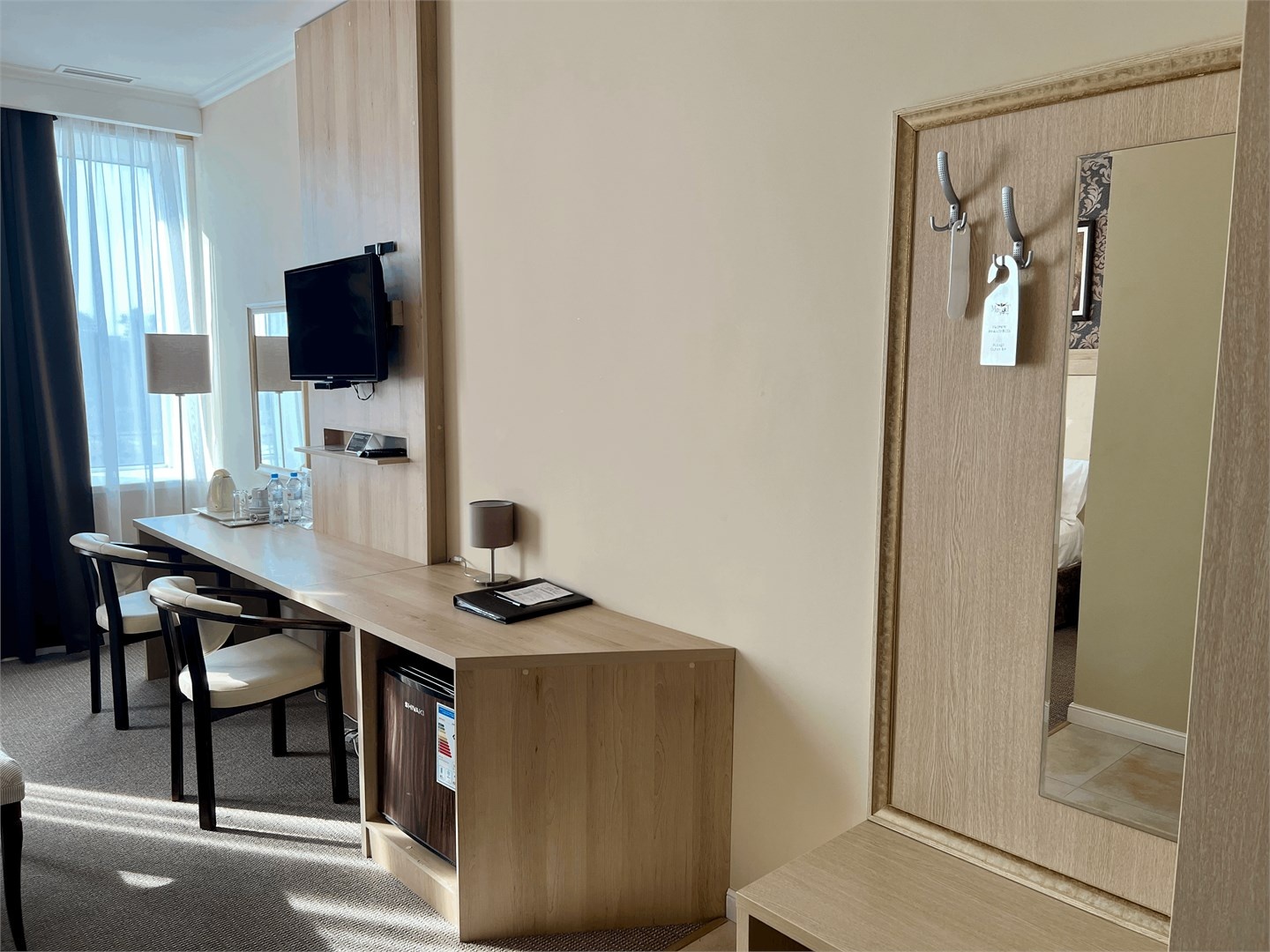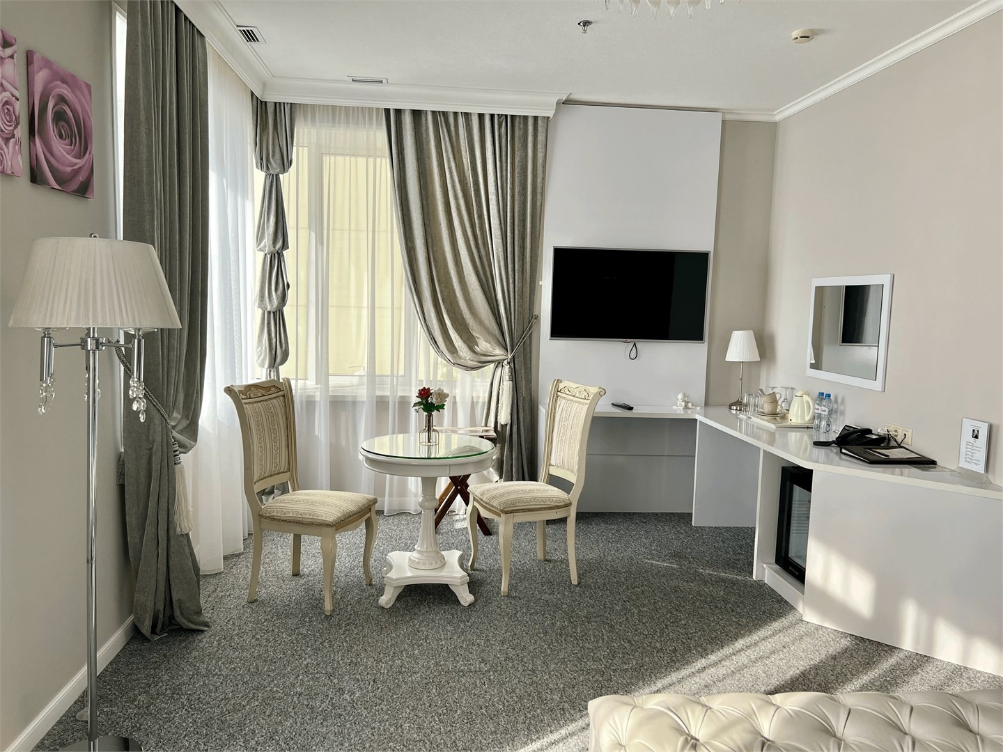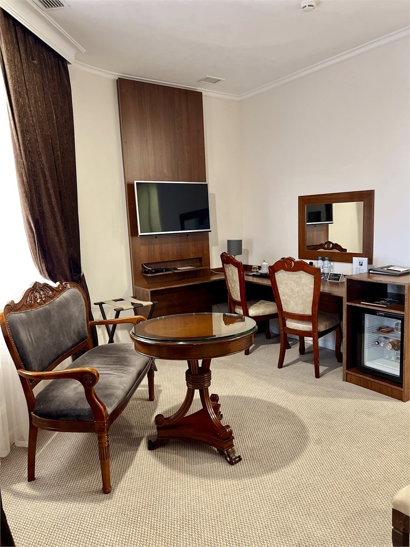Мы предлагаем дорогим гостям комфортные номера со всеми удобствами. Интерьер выполнен в классическом стиле, в спокойных тонах, которые помогают расслабиться и отдохнуть в полной мере. С балконов номеров открывается изумительный вид на реку Кубань или Свято-Троицкий собор.