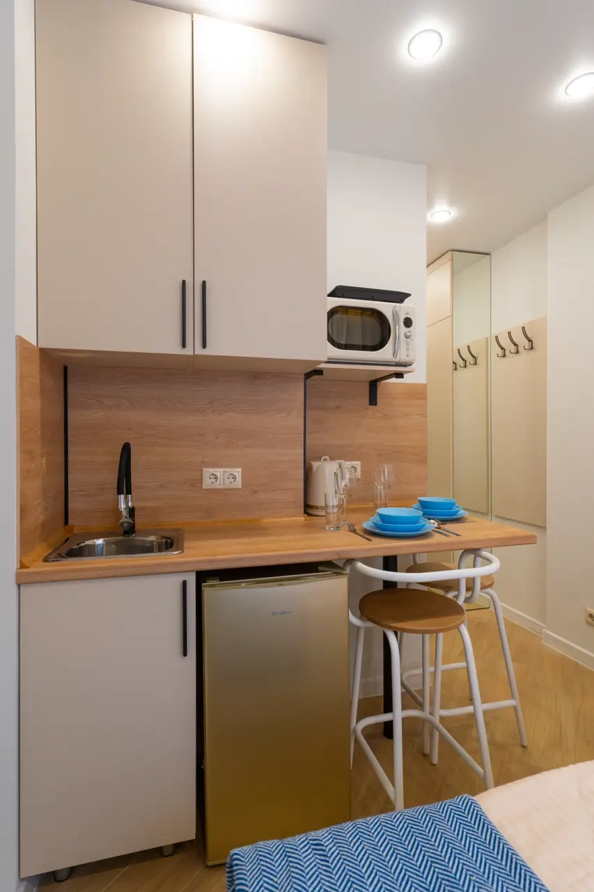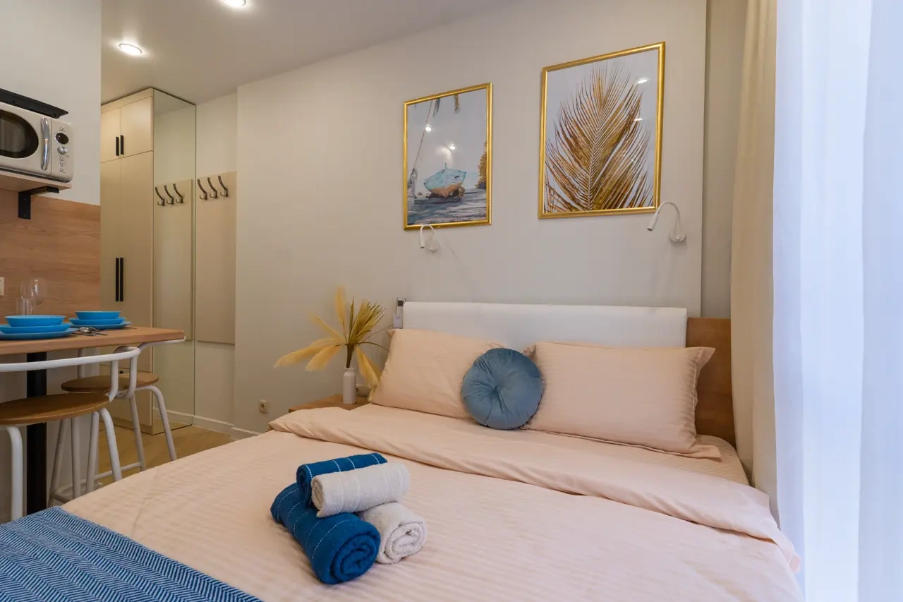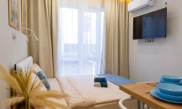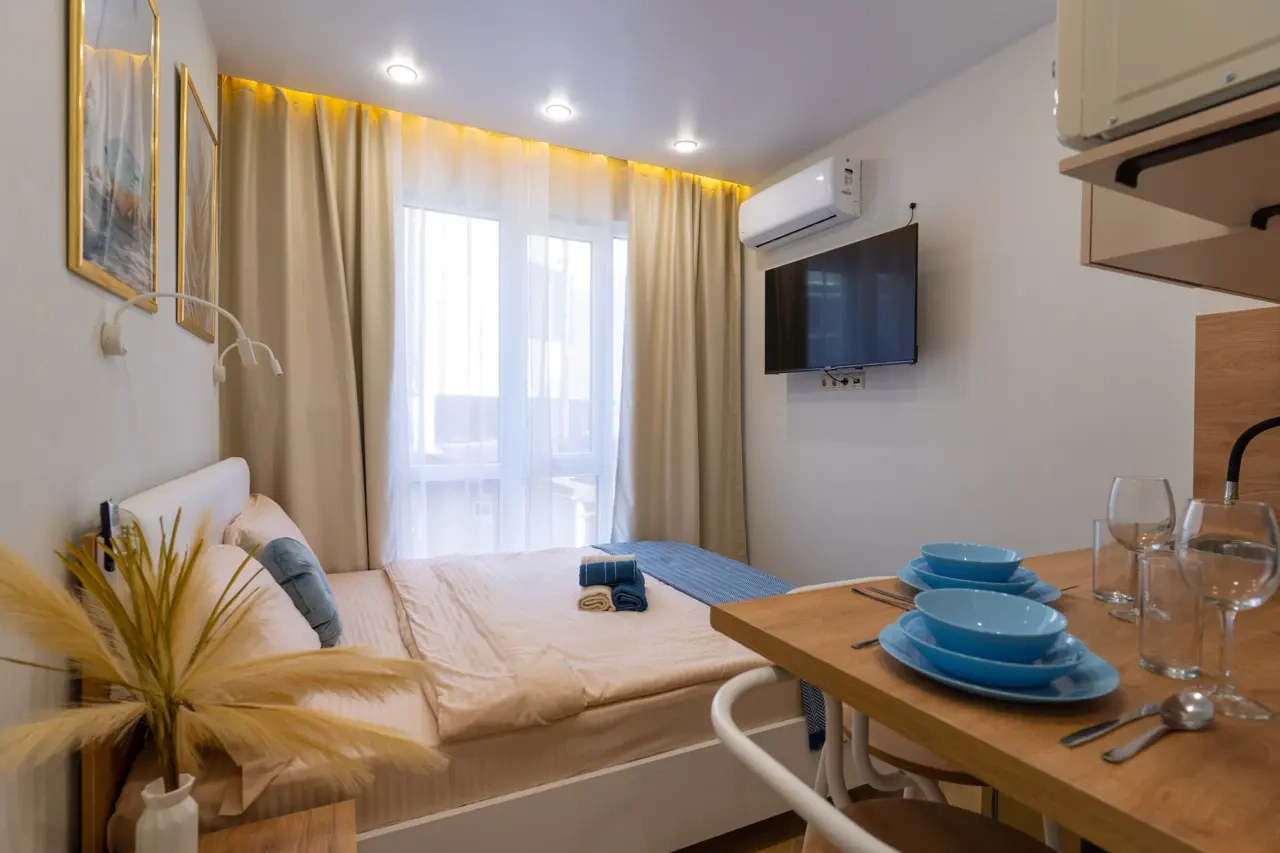 Небольшая, по просторная студия станет отличным вариантом для размещения двух человек! До моря всего 500 метров!
