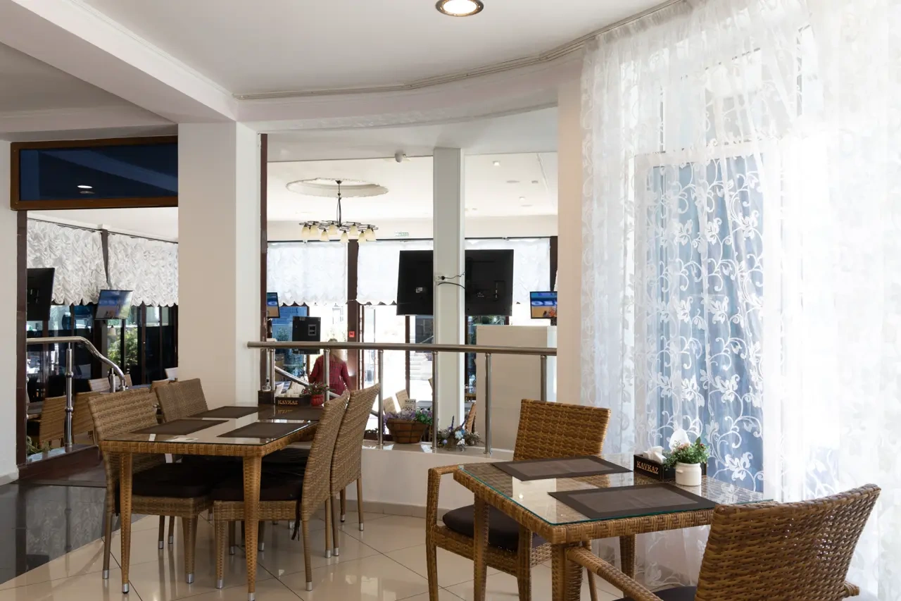 Новый современный отель «Кавказ», расположенный на берегу моря в Нижнеимеретинской бухте, приглашает отдохнуть жителей и гостей курорта. Приятная атмосфера отеля, комфортабельные номера и ответственные сотрудники помогут сделать Ваш отдых незабываемым. Классический интерьер в сочетании с современной техникой и оборудованием позволит расслабиться нашим отдыхающим. Отель оснащен лифтом. Все номера имеют внутреннюю цифровую связь, телевизоры, сплит-системы. Особенно приятно для отдыхающих — это приближенность отеля к морю (30метров) и галечный пляж. Номера оснащены балконами с прекрасным видом на море.