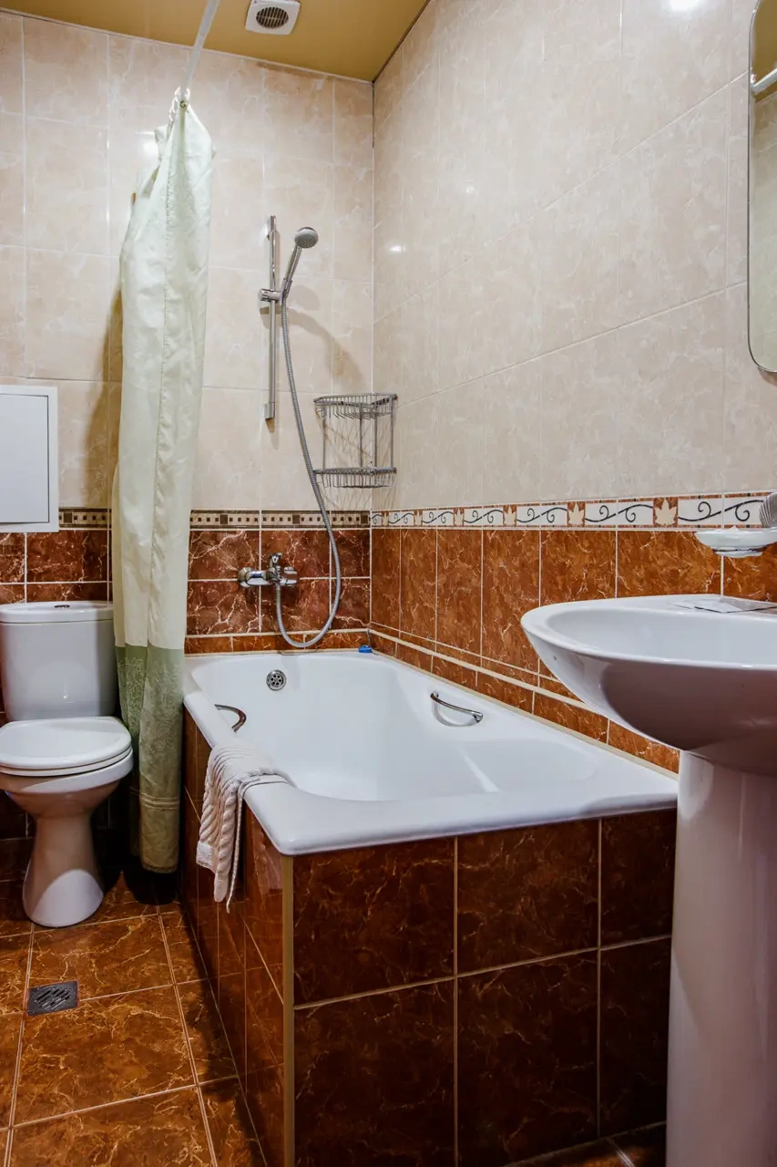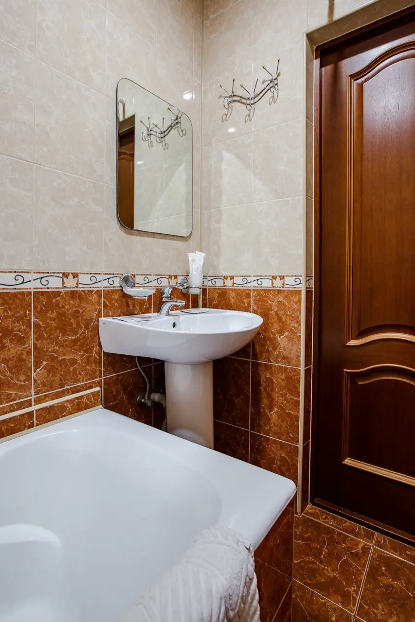 Номер выходил на гору. ресторан Кавказ работал до 23:00, его шум спать не мешал. Номер на 5 этаже. Есть лифт. В номере было чисто-сухо. Номер с большим окном. Вода не заканчивалась. Ванная комната с ванной. Фен, тапочки с принадлежности все было. Поставила 8 за промятый матрац. Но белье все было чистое и номер сухой без влажности. Вентиляция в ванной работала хорошо. Отдыхала в октябре.