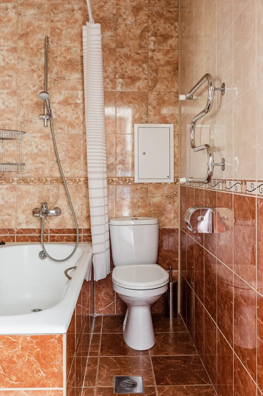 Шторка в ванной плохого качества, вода стекала на пол.