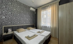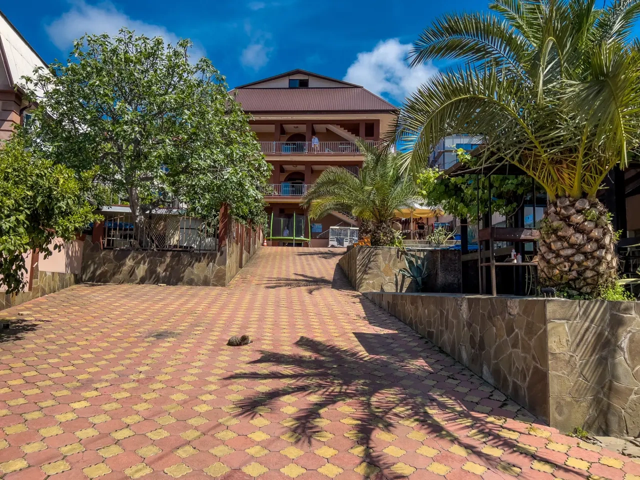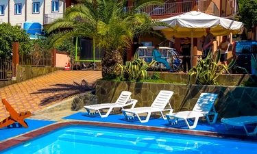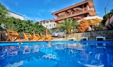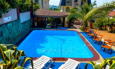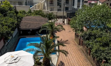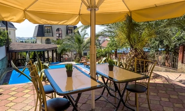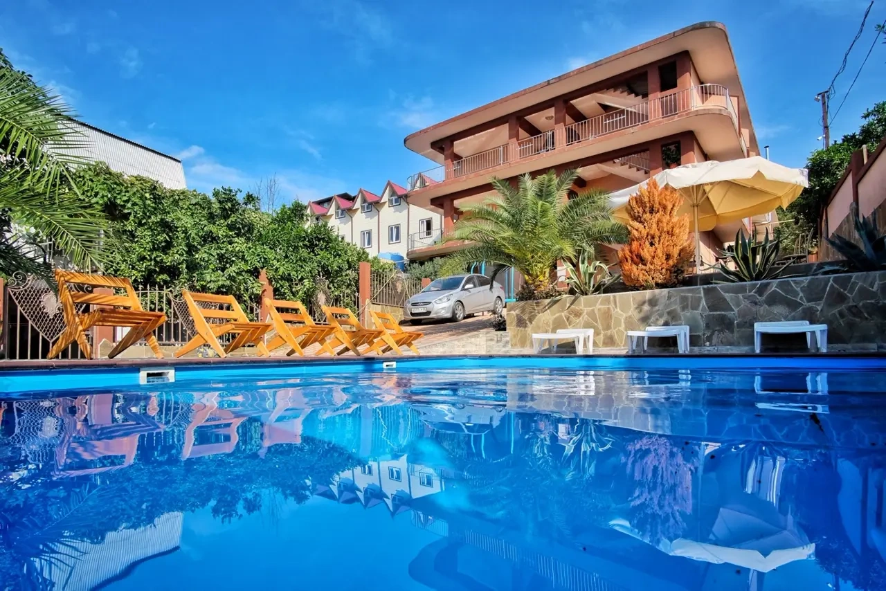 Отдыхала в гостинице, отличное расположение, столовая с вкусной едой, трансфер бесплатный от гостиницы, шикарный бассейн, приятный персонал. Во дворе есть и детская площадка, и беседка, шикарное место, чтобы отдохнуть как с парой, так и со всей семьей. Очень приятные персонал.????