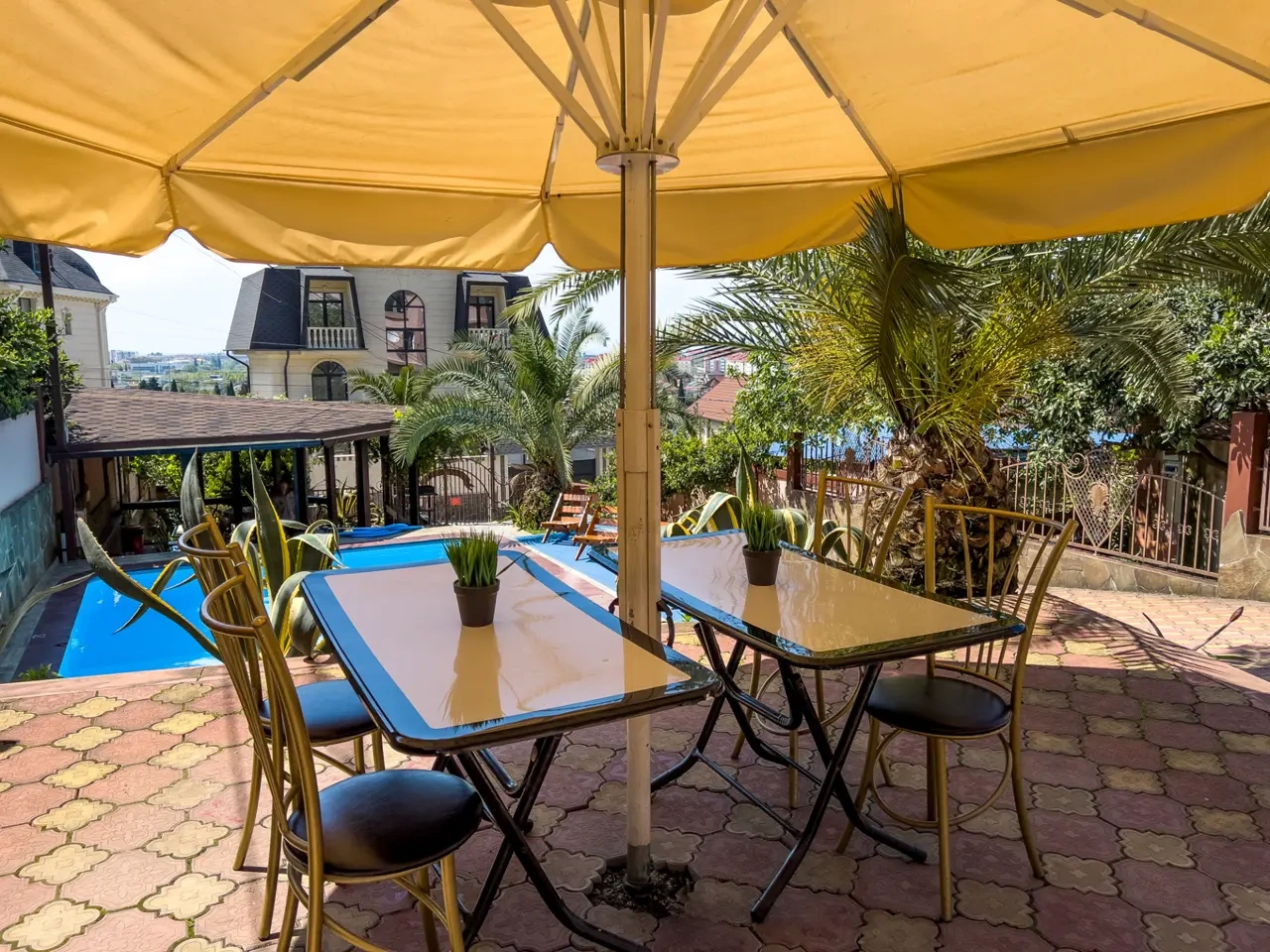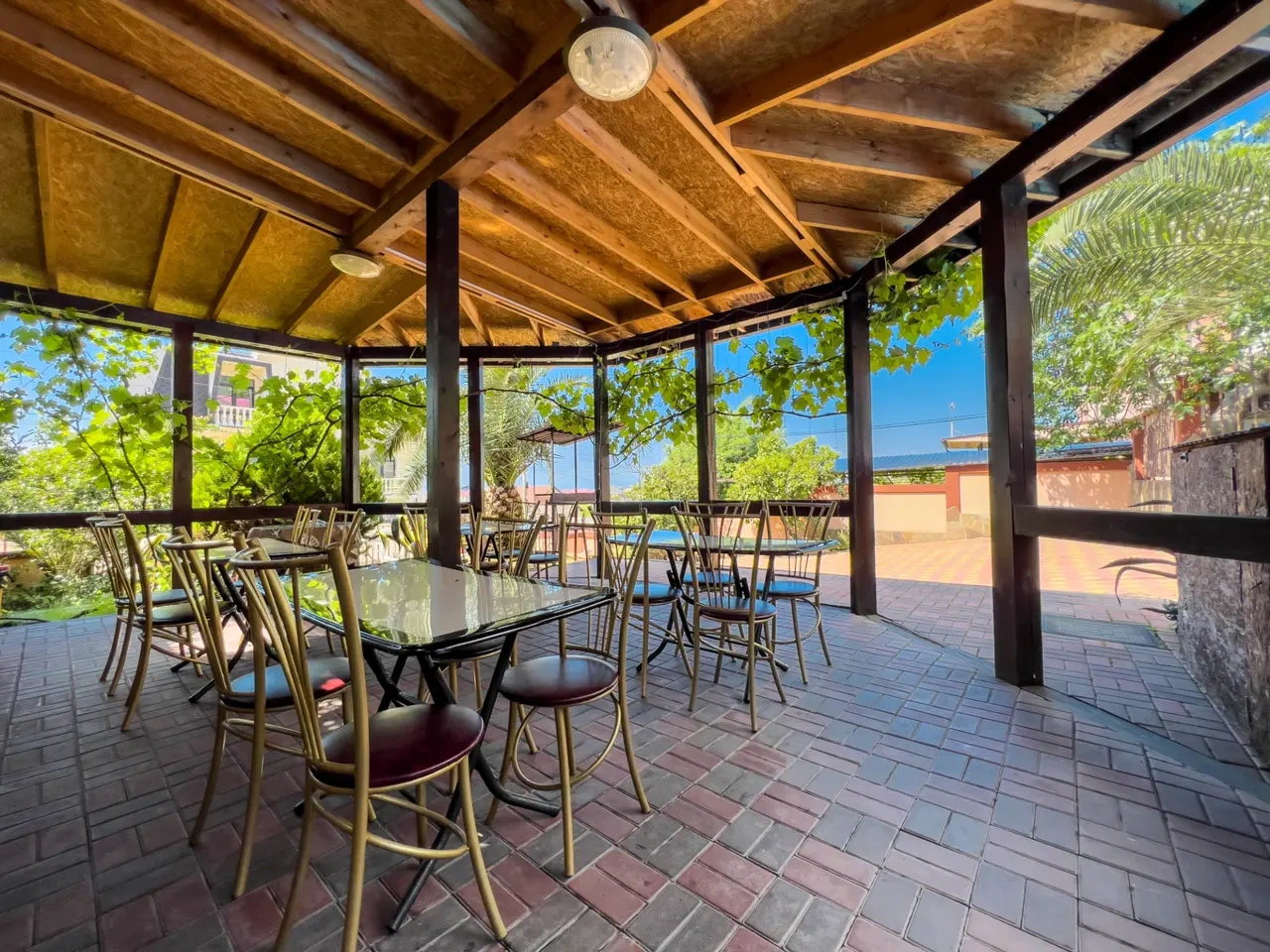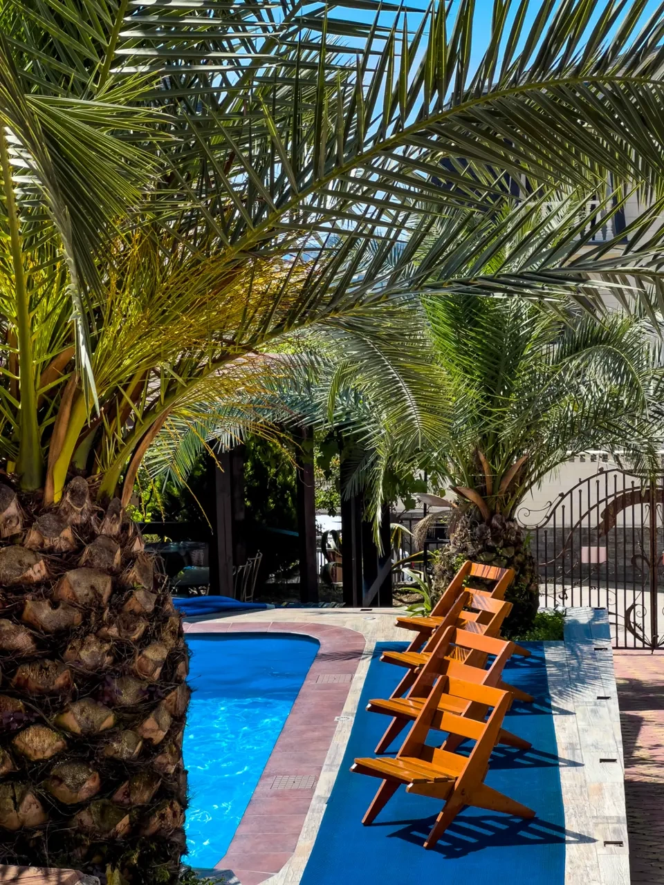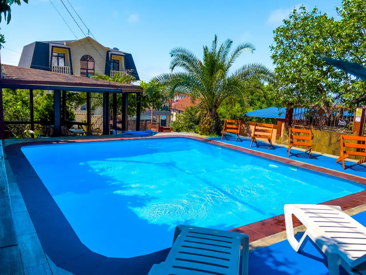 Очень красивый отель, очень красивые и чистые номер, я как человек чистоплотный боялась, что номер будет грязным, но из всех номеров, где я останавливалась, он был очень чистым. Удобная кровать, был телевизор в номере, очень красивая терраса, утром можно было попить кофе. На территории есть бассейн, мангал, детская площадка