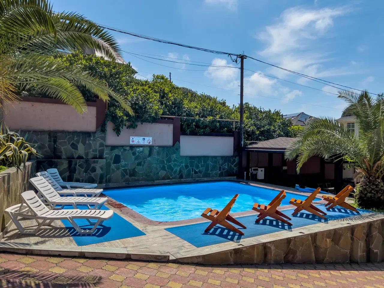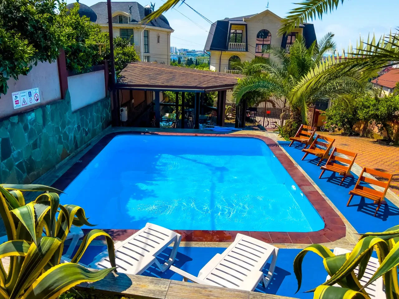 Приехали в отель,на ресепшене никого не было,пришлось звонить минут 10,никто не отвечал.Персонал грубый,ощущение будто мы зашли к ним в личный дом,а не снимаем там комнату.Специально снимали именно этот гостевой дом,где было заявлено ,что будет теплый бассейн,на мой вопрос: «почему бассейн холодный?» ,мне ответили: «мы и не включаем».В общем,хотели бассейн,но нет.)Больше бы сюда не приехали.