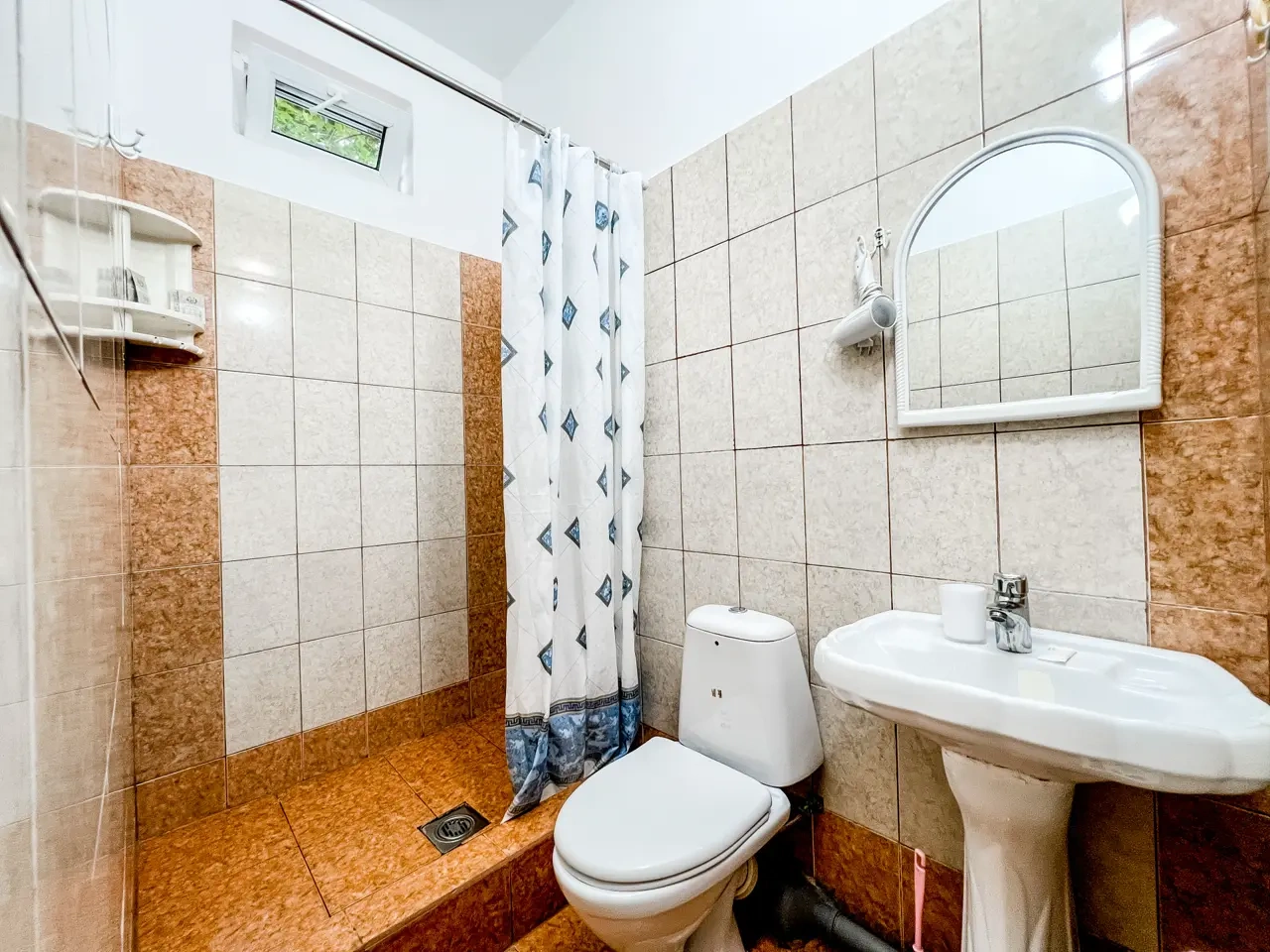Все чисто,уютно ,в номере новая мебель,классный матрас.В номере индивидуальный балкон,сушилка для белья.Есть общая кухня,мангальная зона,бассейн с подогревом,теннисный стол.Все что надо все есть и даже больше ????)