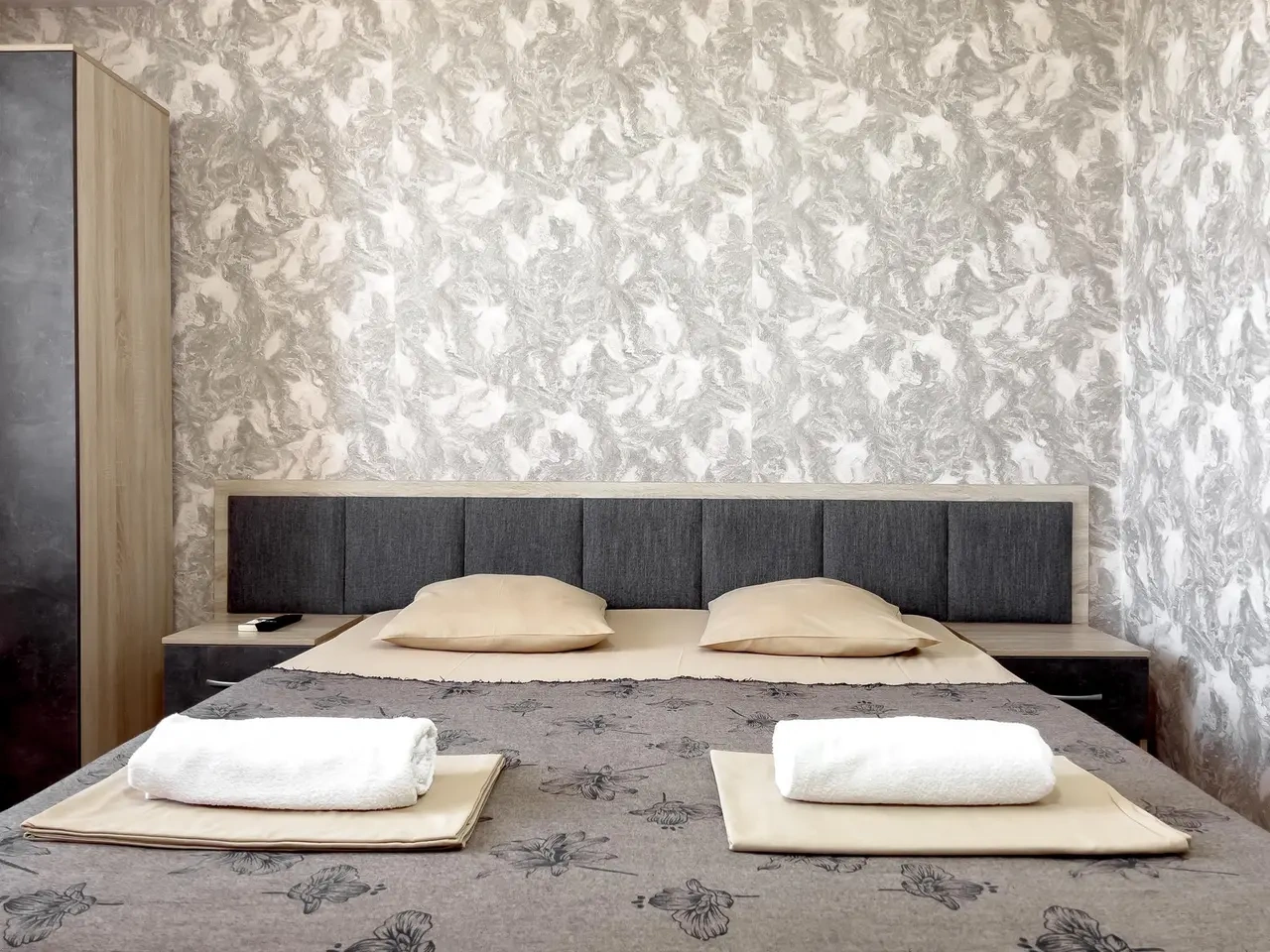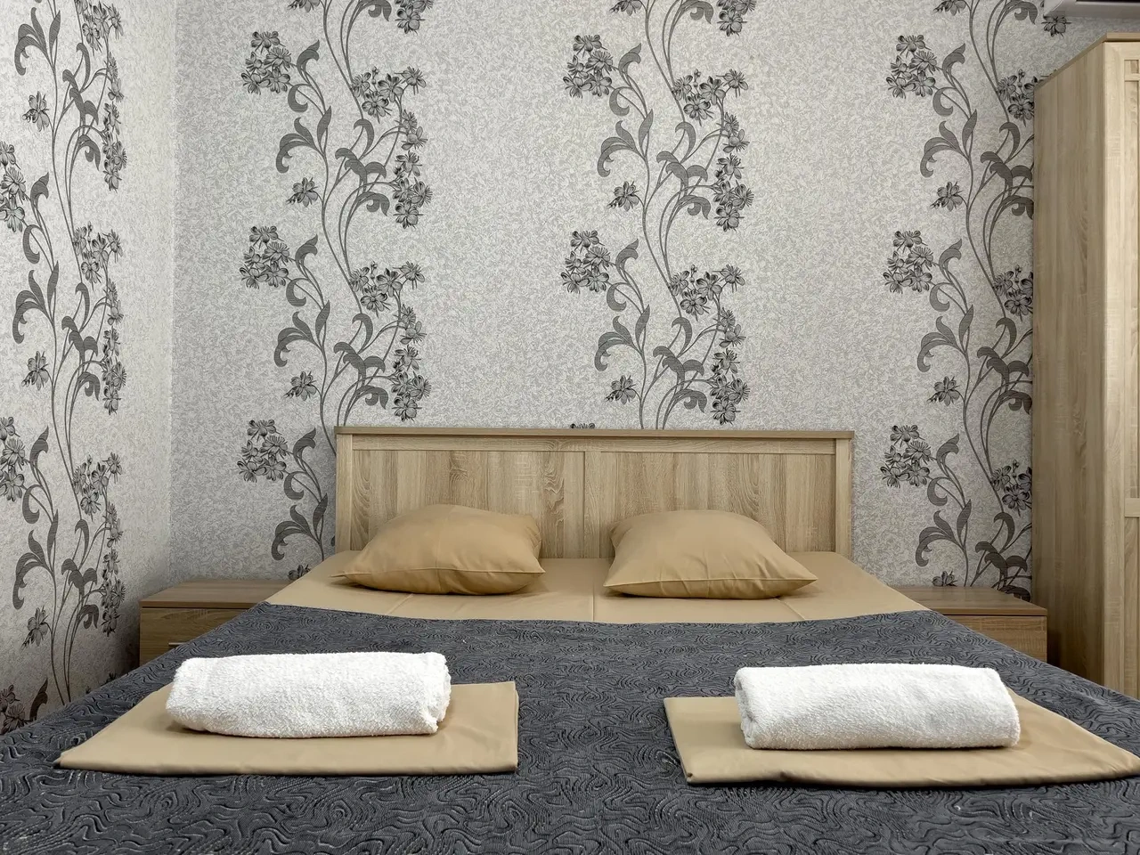 Удобная кровать, новая мебель, все очень чисто. Белые полотенца, в ванной полная комплектация. Отличный напор воды.
