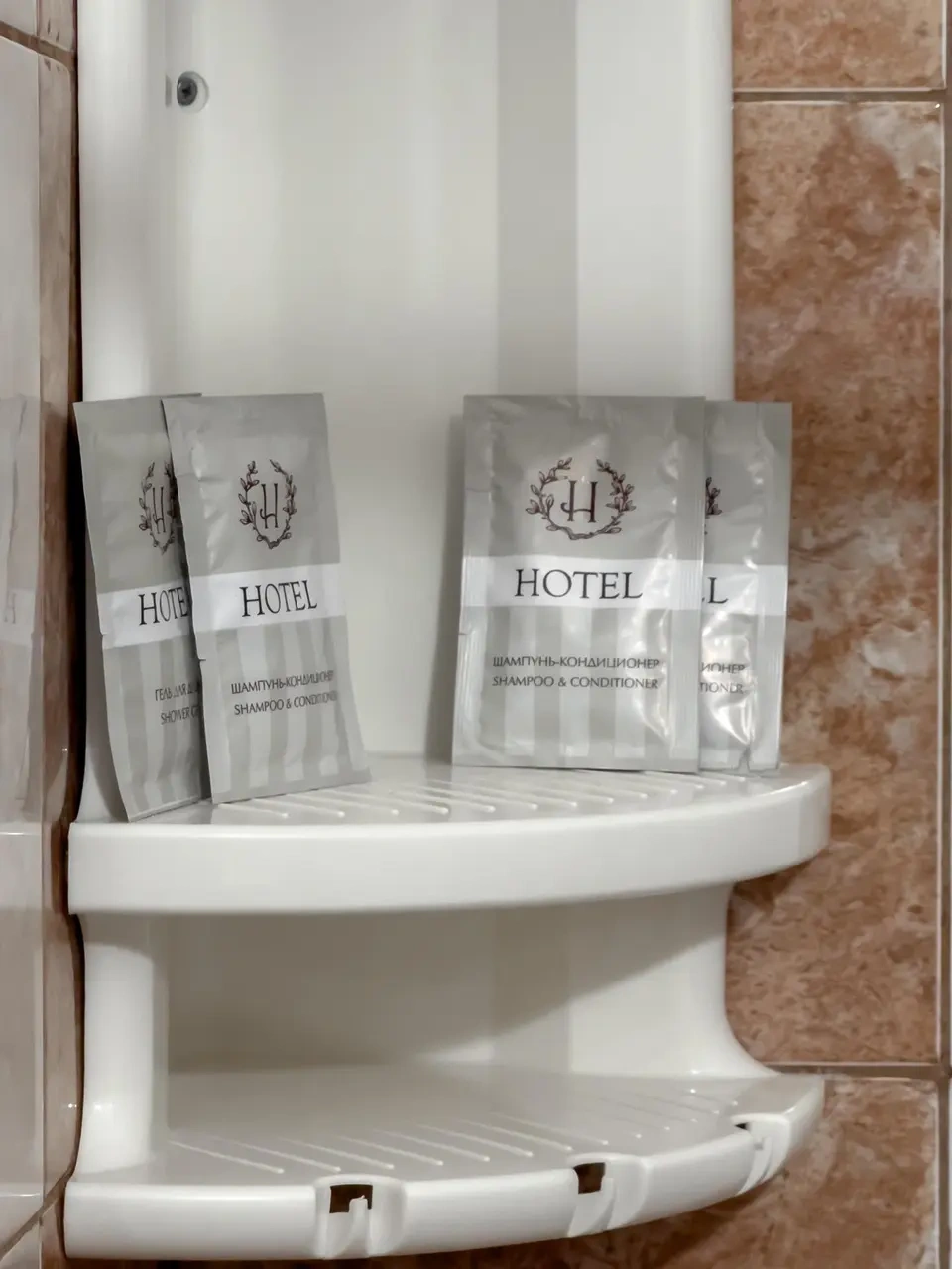 В номерах чистота, белые полотенца, гель, шампунь