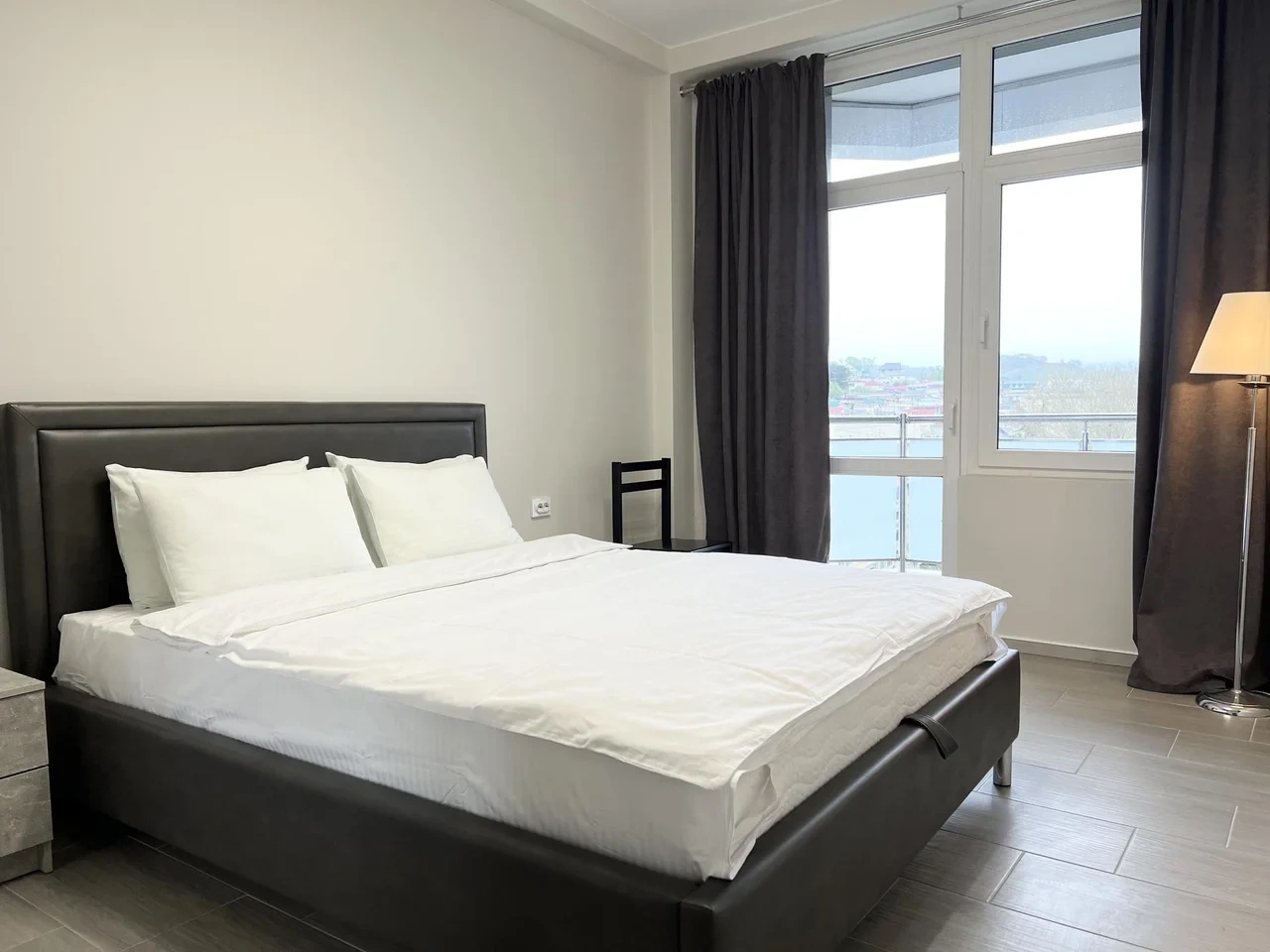 Апартаменты распологаются на 8 этаже,площадь 52 кв.метра,с выходом на два балкона и видом на горы и море.