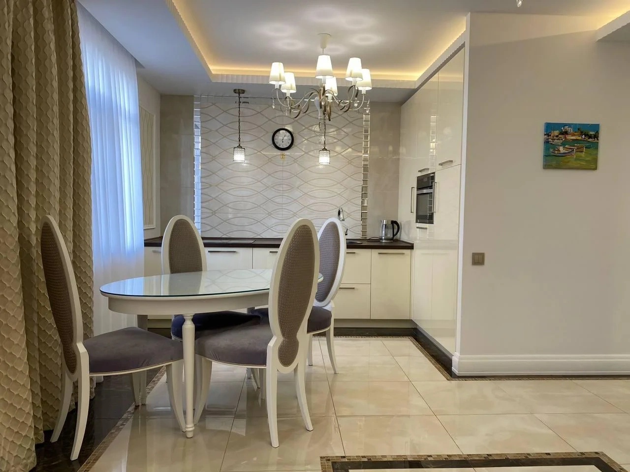 Апартаменты находятся в Нижнеимеретинской Бухте в г. Адлер (Сочи), в современном жилом комплексе на первой береговой линии. С одной стороны открывается великолепный пейзаж Кавказских гор, а с другой – живописный вид на Черное море. Рядом с апартаментами находятся олимпийские стадионы, дельфинарий, Сочи-Парк и романтичная прогулочная набережная. Международный аэропорт Сочи и ж/д вокзал всего в 15 минутах езды на автомобиле. До пляжа можно дойти всего за 1 минуту. К услугам гостей элитный двухкомнатный номер, выполненный известным дизайнером в стиле Ар-деко, подойдет для 4 гостей.