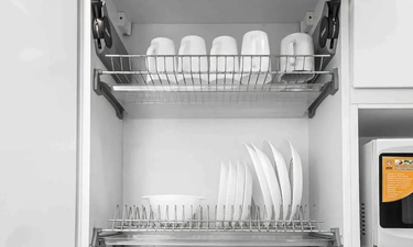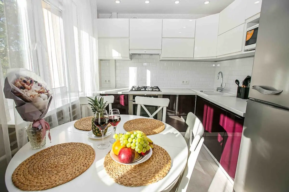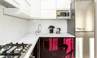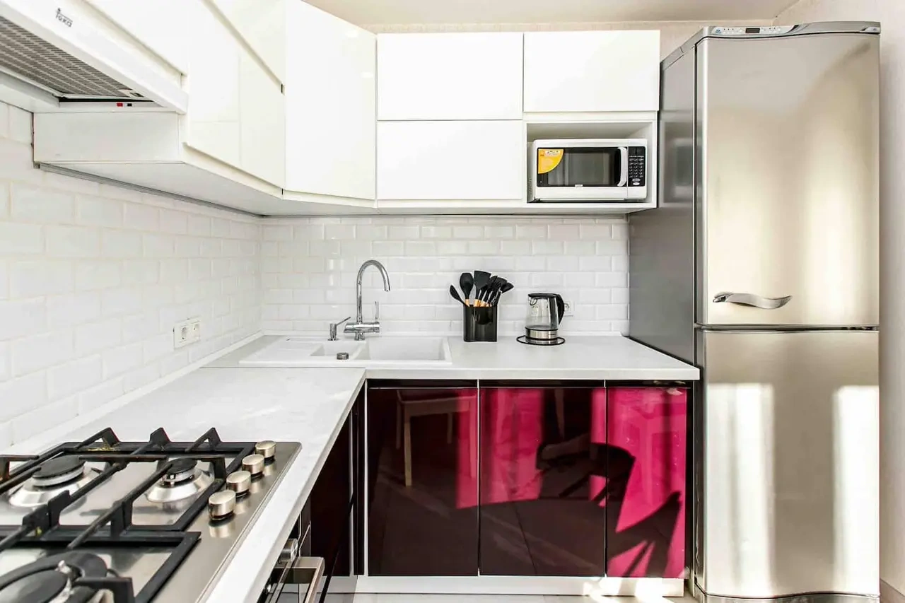 3. Современную бытовую технику (холодильник, СВЧ, варочная панель, стиральная и посудомоечная машина, чайник, утюг, фен)