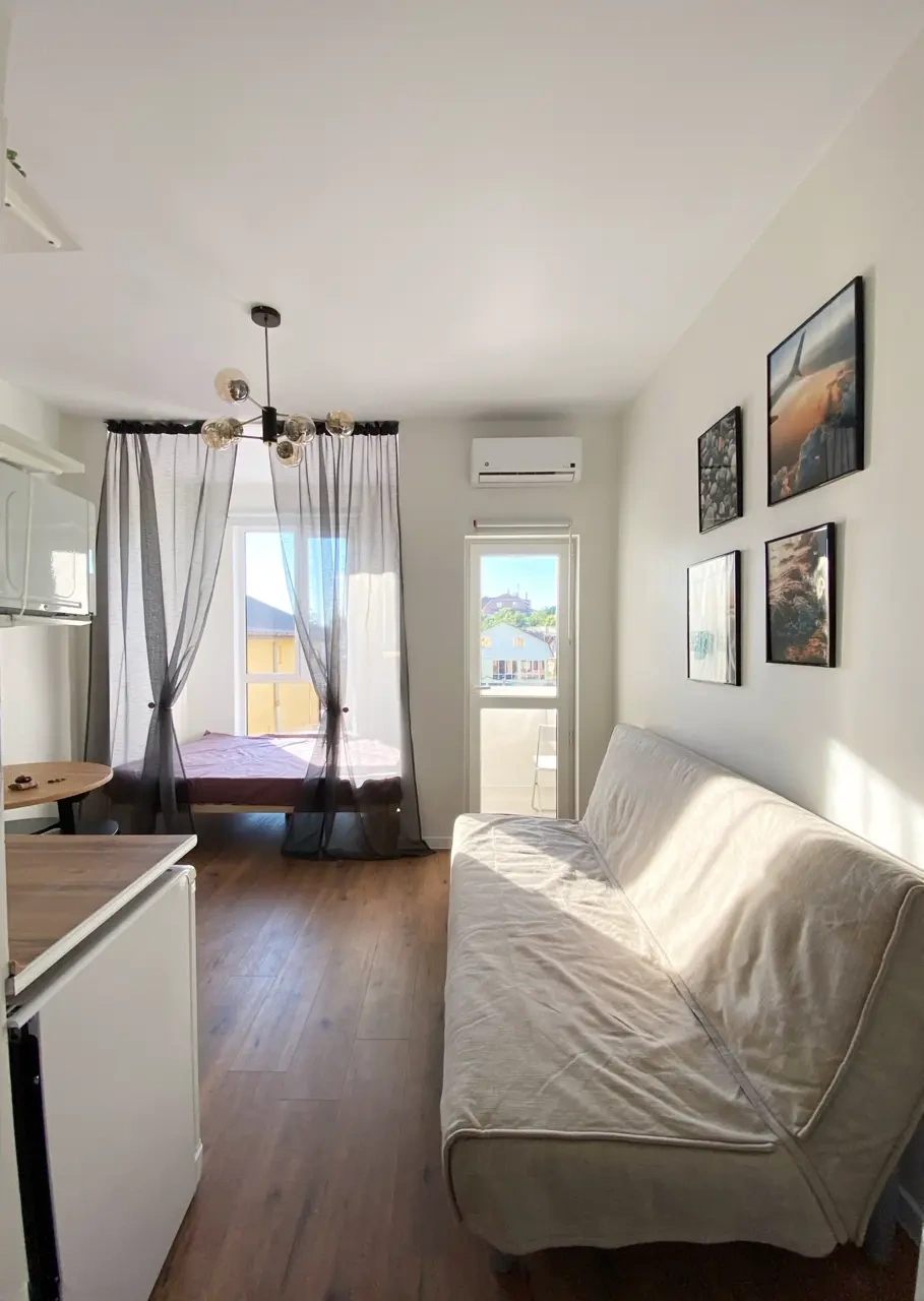 Квартира студия, есть кондиционер, телевизор, холодильник, то есть все что нужно для комфортного проживания