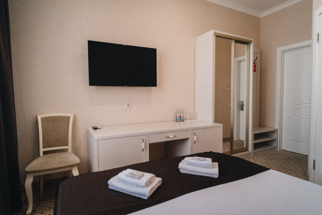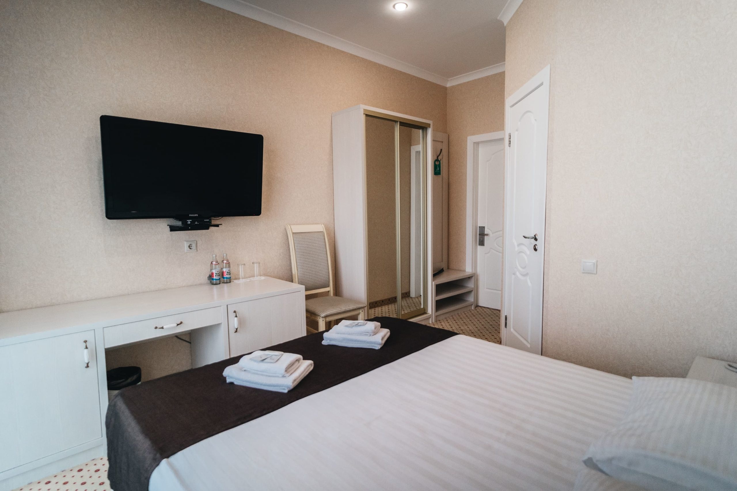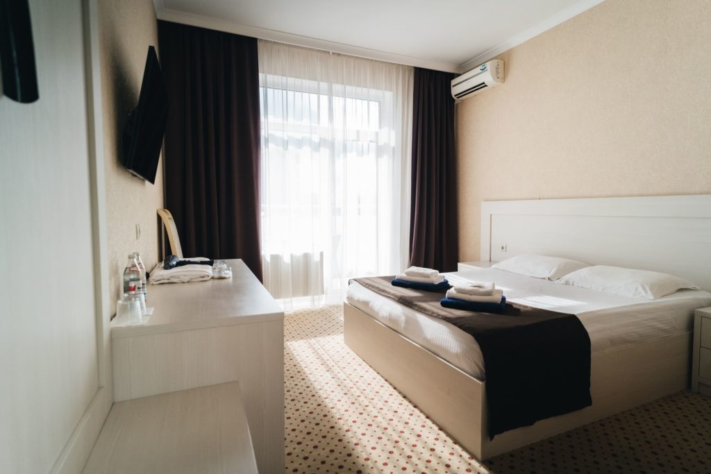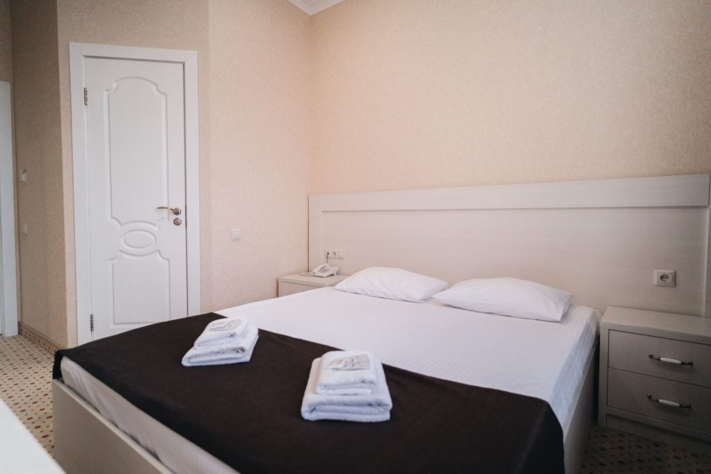К вашим услугам комфортабельные номера различной категории, бассейн, хамам, охраняемая автостоянка. Каждый номер оснащен кондиционером, телевидением, собственным санузлом, доступом к сети WI-FI, а в некоторых есть балкон.