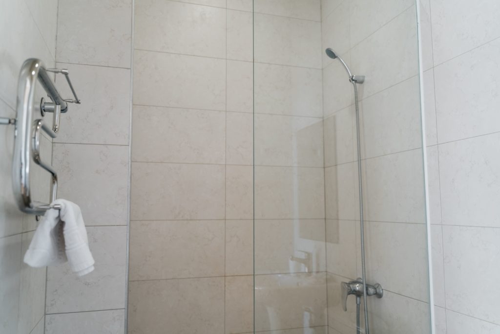 Туалетная комната крохотная, нет полочки для принадлежностей возле душа.