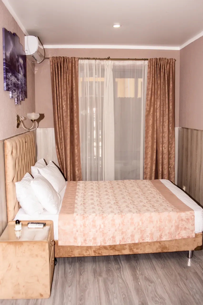 Номер полностью соответствует описанию. Очень удобная кровать. Дополнительное раскладывающееся кресло. Достаточно свежее бельё (не застиранное, почти новое), В ванной комнате есть всё необходимое.