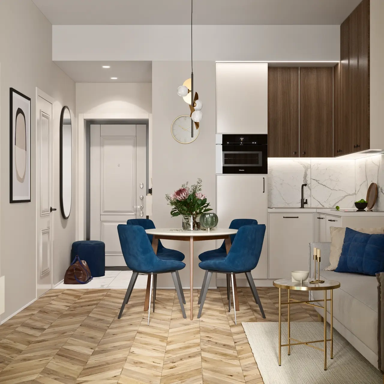 3. Современную бытовую технику (холодильник, СВЧ, варочная панель, стиральная машина, чайник, утюг, фен)