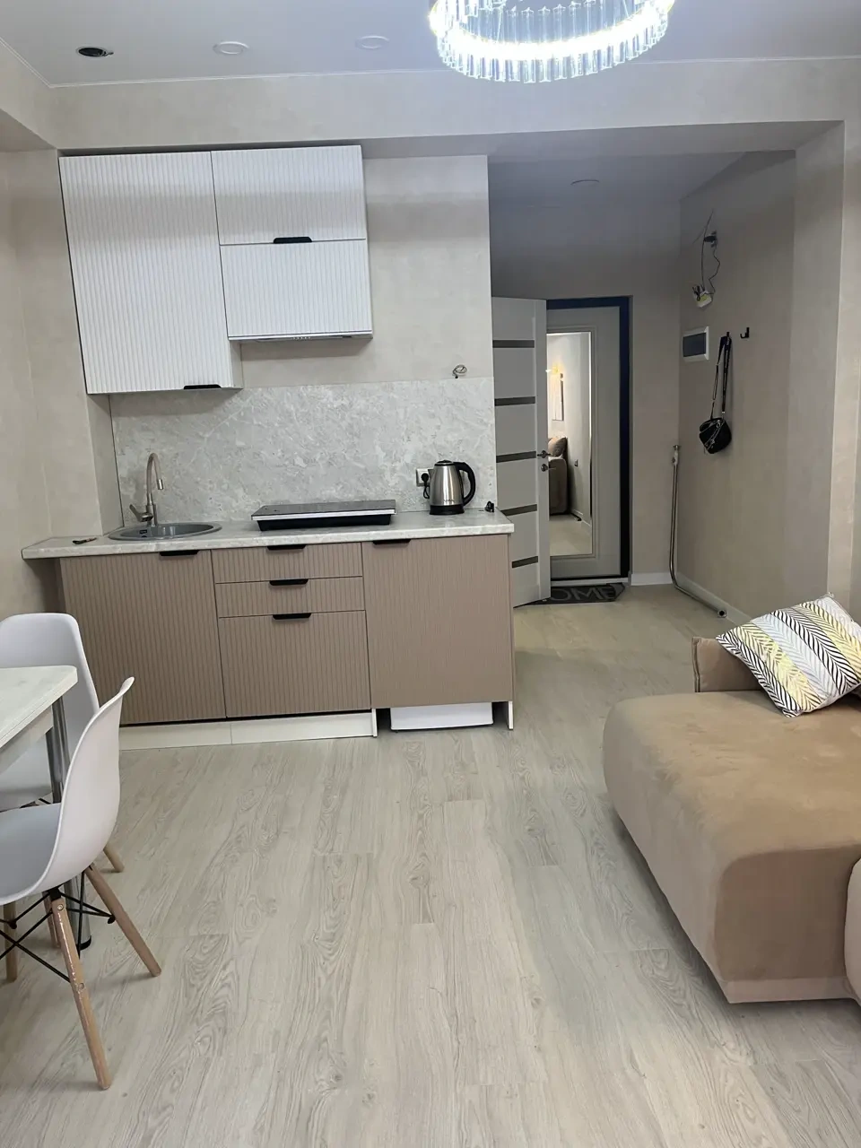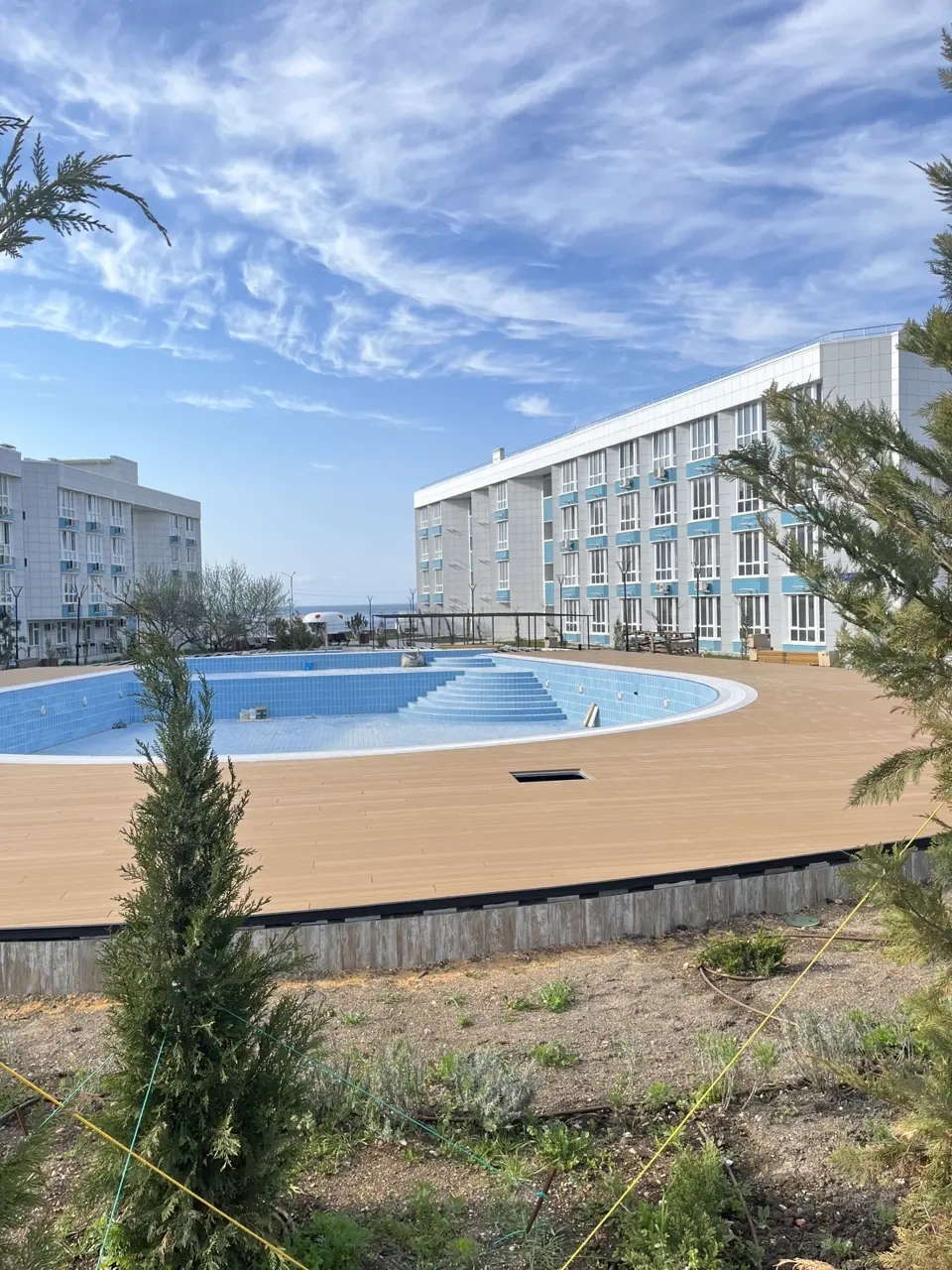 Есть Все необходимое для отдыха ! Прекрасный жилой комплекс с бассейном , пляжем и детской площадкой ! Для спорта : Баскетбольная площадка , Парк победы 5 минут на автомобиле, Динорарк и скейтбординг 5 минут пешим ходом ! Парковка для авто .. Центр города 10-15 мин на авто . Проживание От 3 х суток .