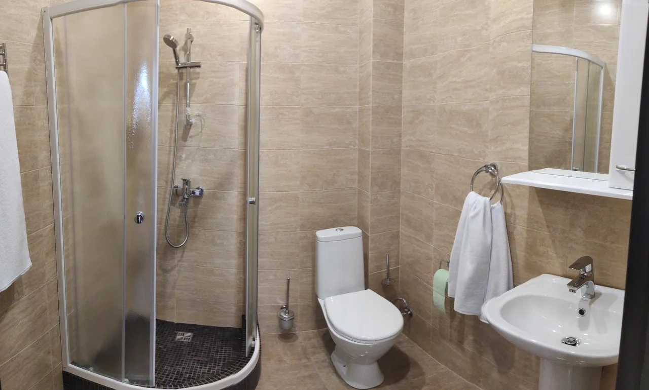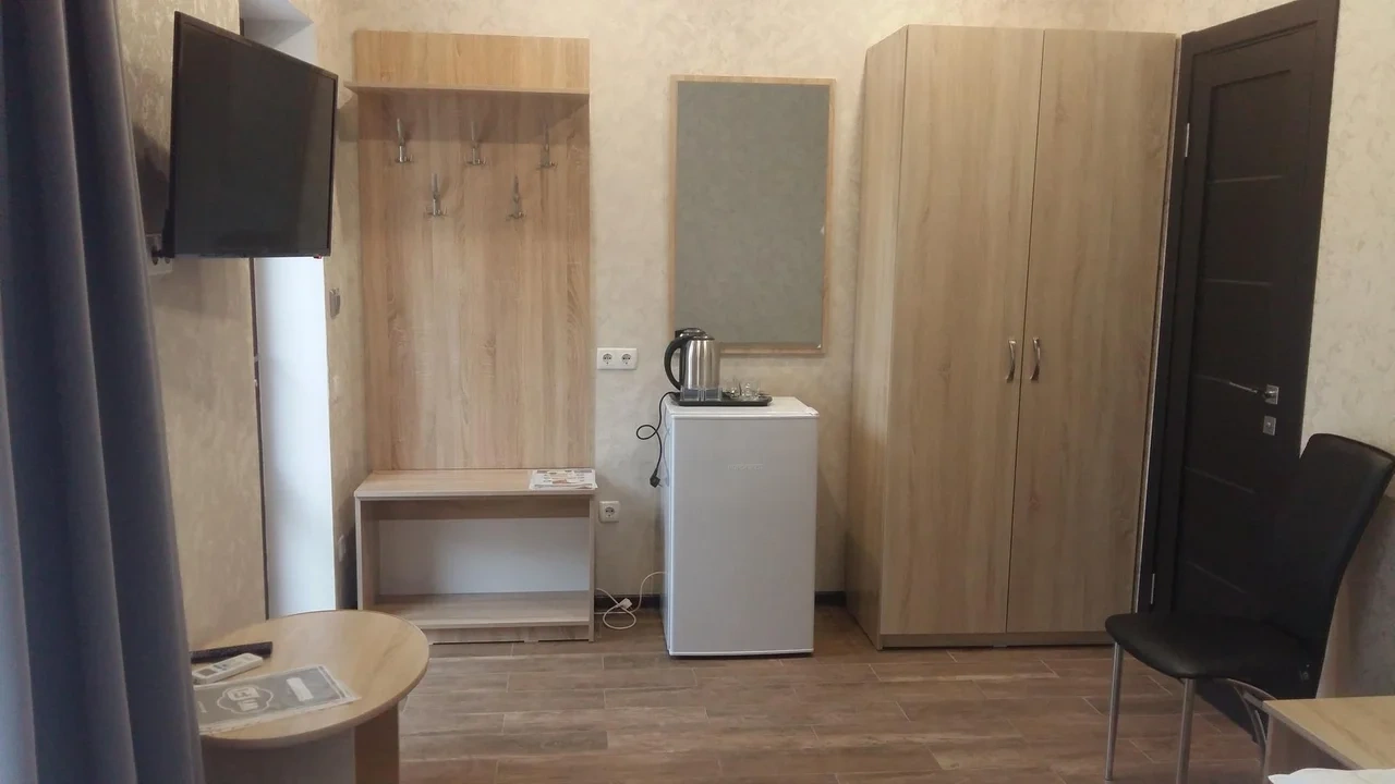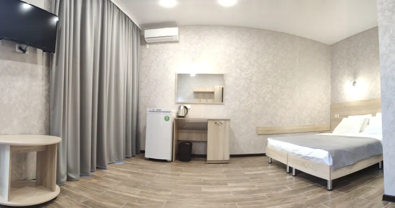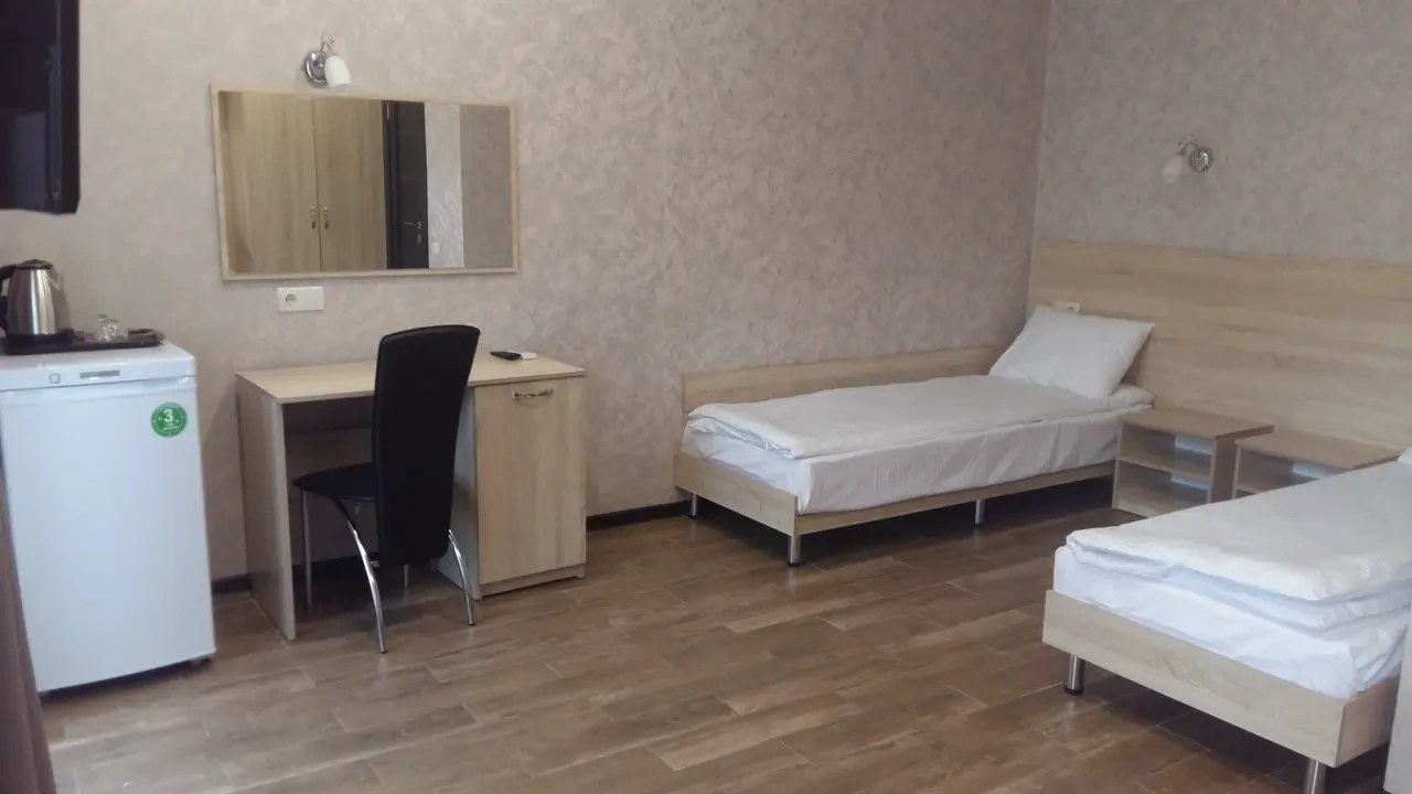 Однокомнатный номер с двухспальной или двумя односпальными кроватями . Возможно дополнительное место на ортопедической раскладной кровати. В санузле душевая кабина ,умывальник ,унитаз,
