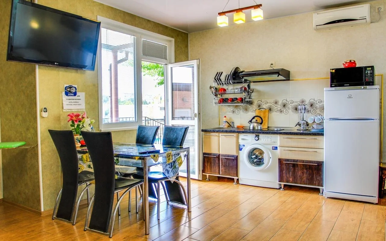 Отличный отель для знакомства с городом. Приветливый хозяин, при заселении подарил карту Севастополя и окрестностей с указанными на ней достопримечательностями, рассказал что в первую очередь надо посмотреть и как лучше туда добраться. Отель новый, номер просторный, светлый, со всем необходимым. Номер был с видом на бассейн, машина под окном. Рядом с номером общая оборудованная всем кухня, стиральная машина с порошком, чай/кофе/сахар бонусом (мелочь, а приятно). До моря далековато, поэтому не для пляжного отдыха, а для знакомства с городом и на авто самое то! Рекомендую!!!