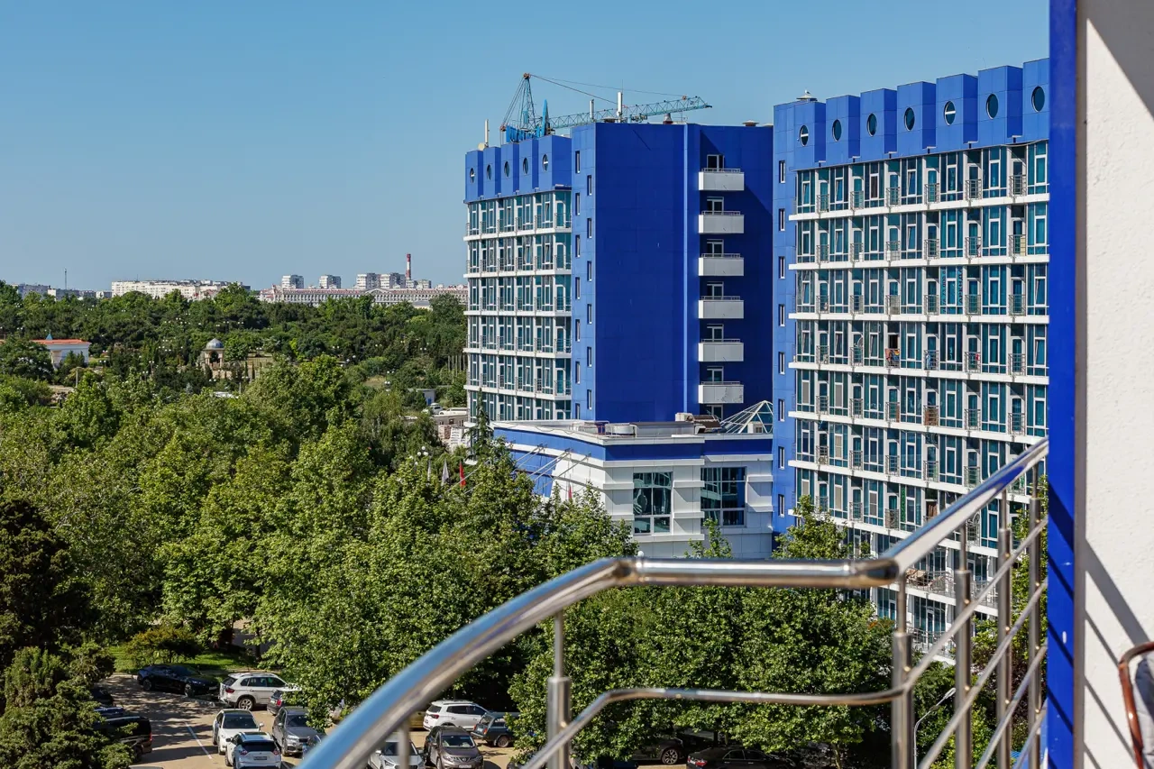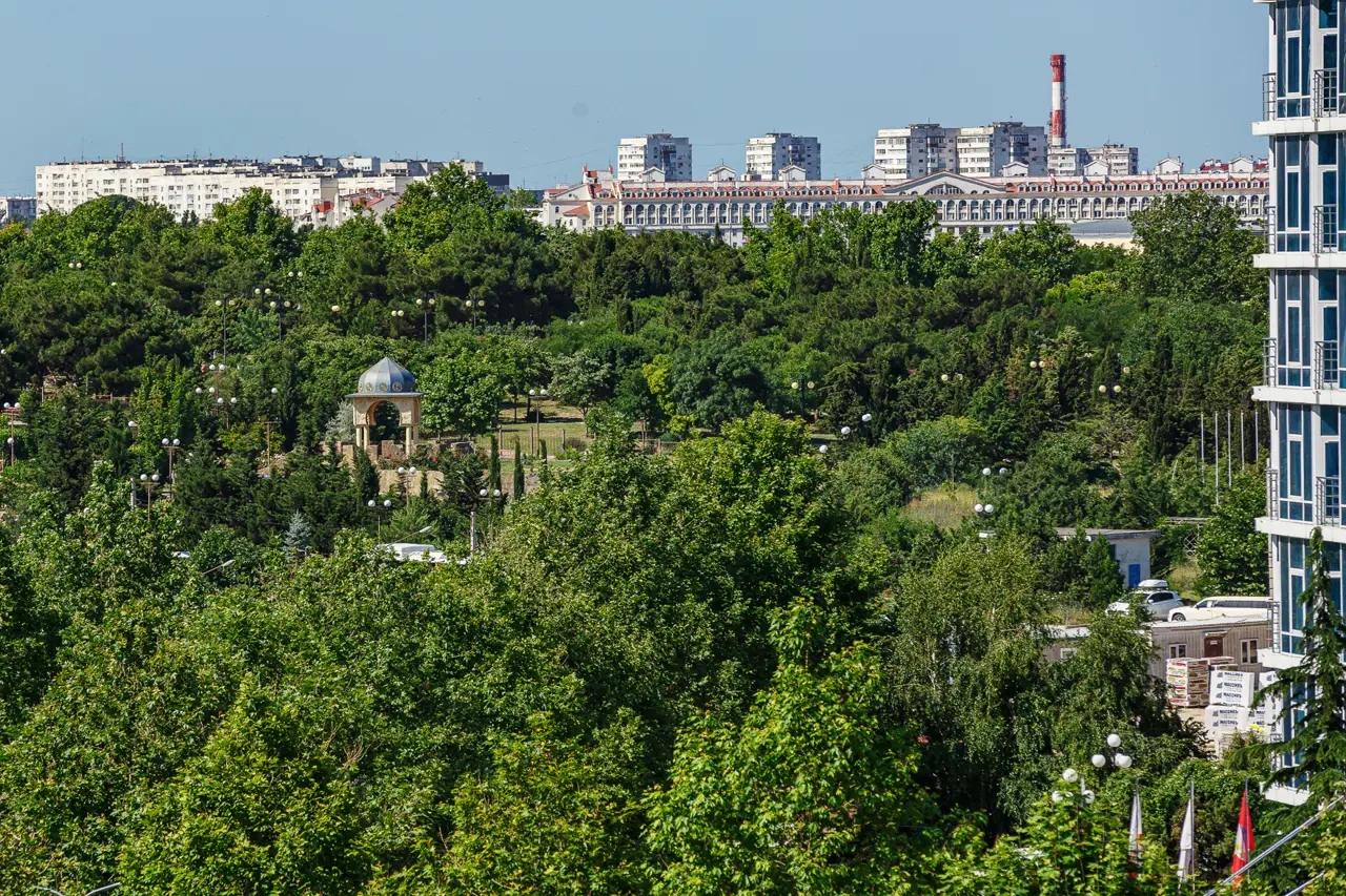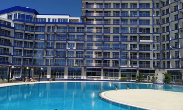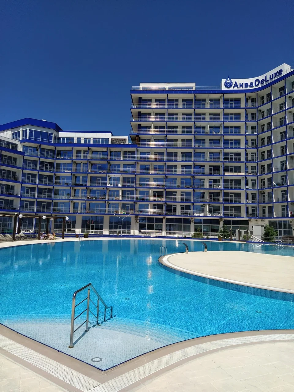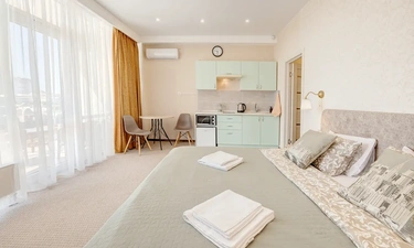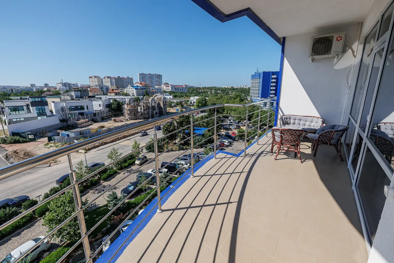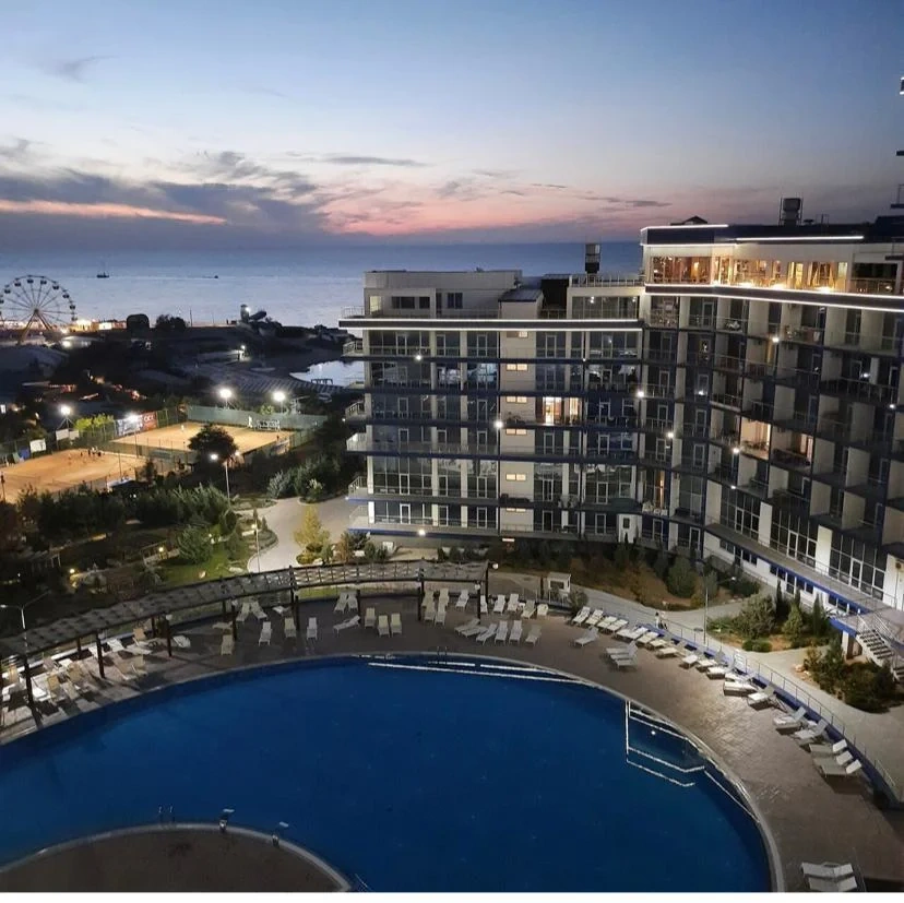 Апартаменты в 130 м. от моря в г. Севастополе. Площадь 31 кв. м. Двухспальная кровать, кухонная зона, холодильник, микроволновка, плита, чайник, посуда. Есть огромный балкон. Туалет, ванна, душ, фен. Великолепный открытый бассейн бесплатно, Спортивный и спа комплексы со скидкой.Парковка.