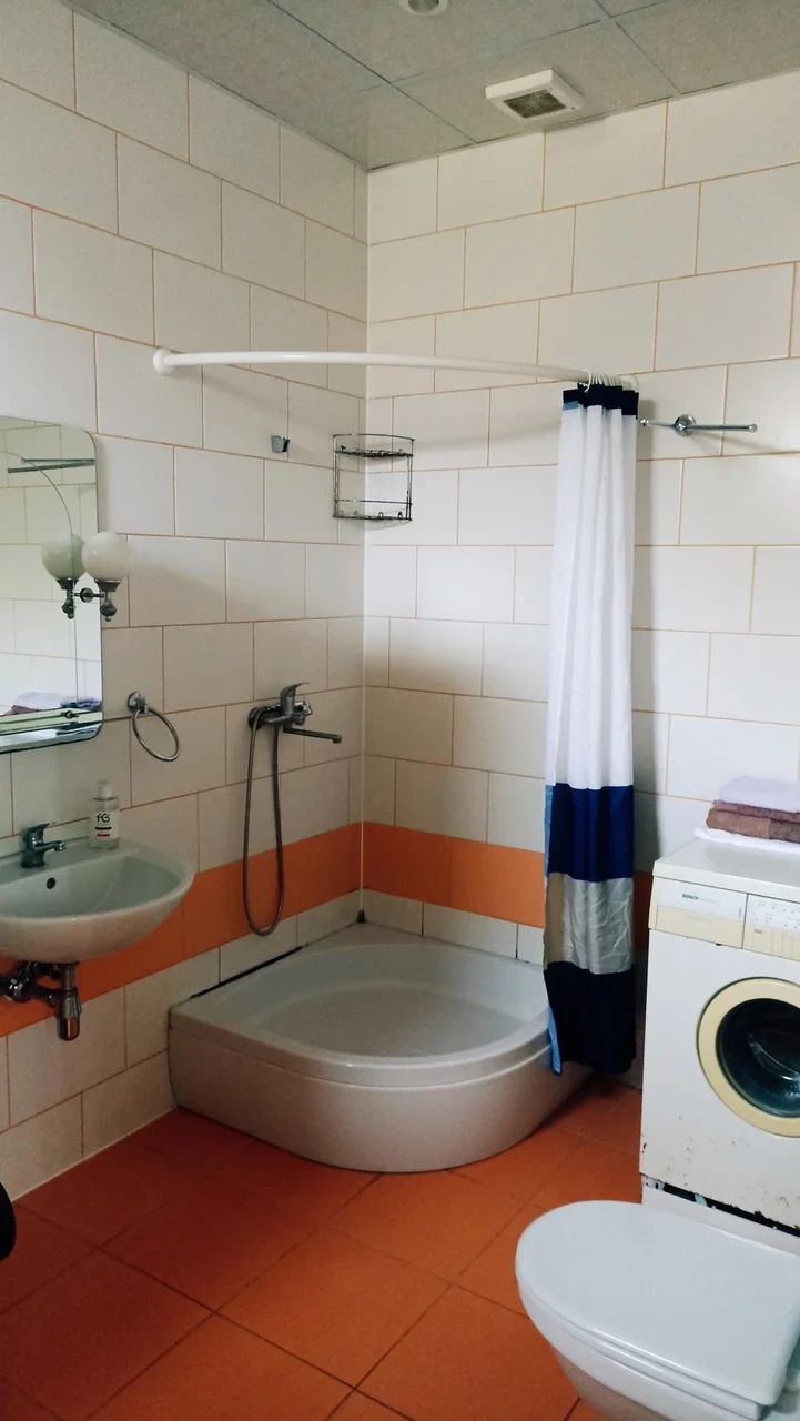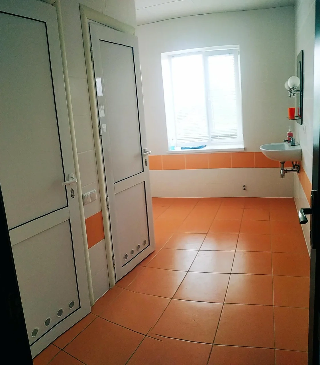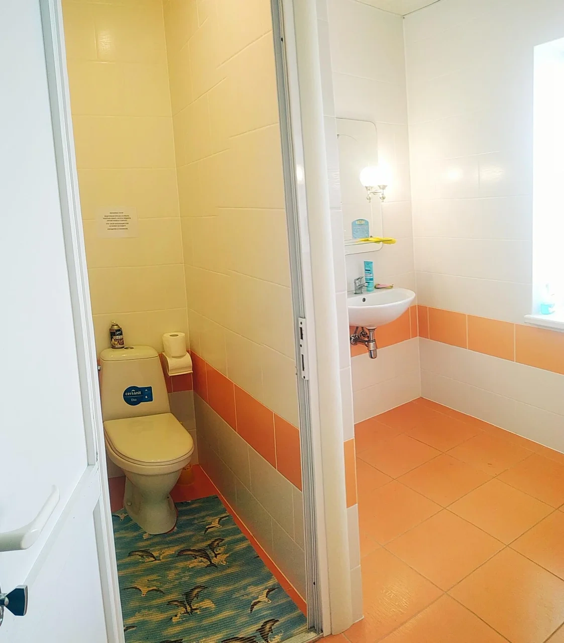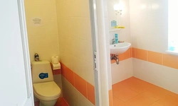 На втором этаже 3 номера и один туалет с душевой на все номера, чистота идеальная, санузел большой. На улице есть доп.санузлы и душевые.