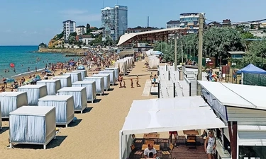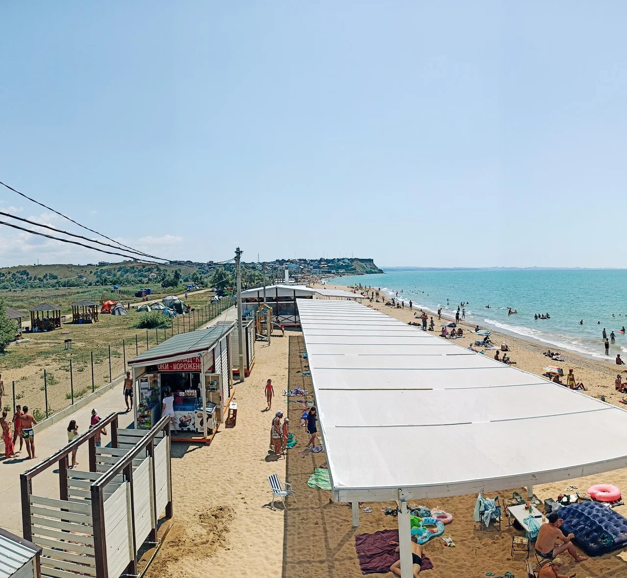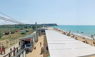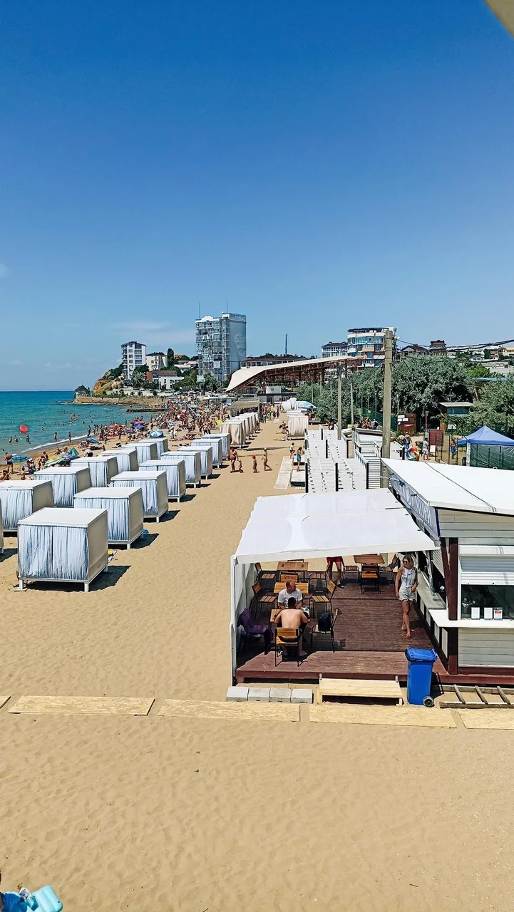 До оборудованного пляжа орловки минут 20, но можно на автобусе 2 остановки, там народу больше, но есть душевые, туалеты и много кафешек, в том числе недорогая столовая.