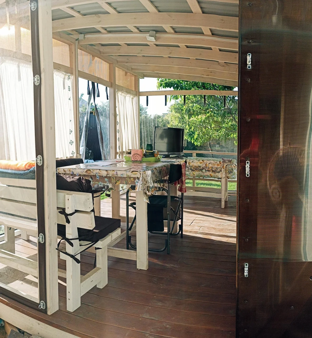 Дом находится в СНТ, до дикого пляжа минут 15 пешком. Пляж прекрасный: народу мало, вода прозрачная, единственный минус- это люди которые почему-то оставляют пакеты с мусором на пляже, не берегут такую замечательную природу.