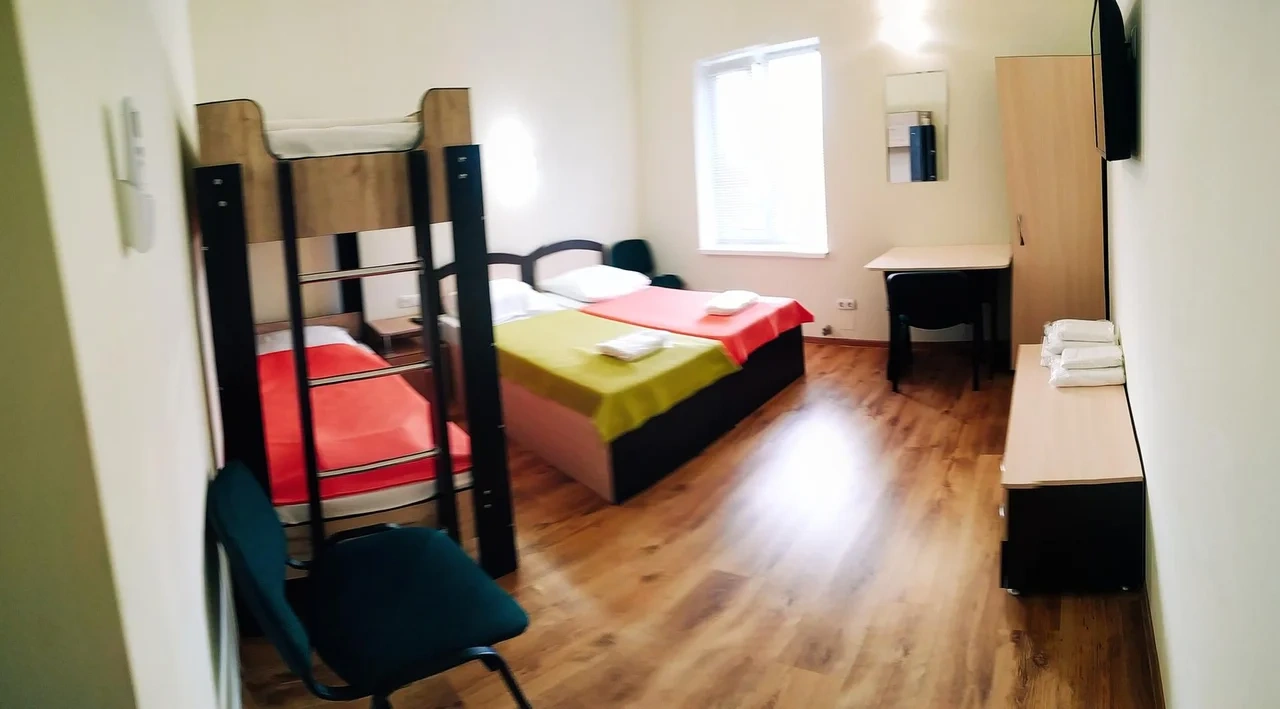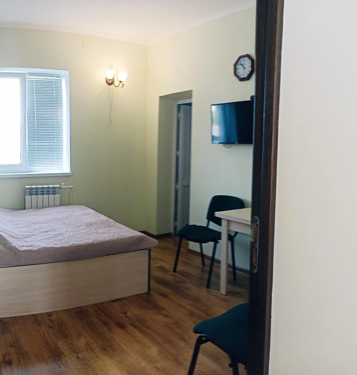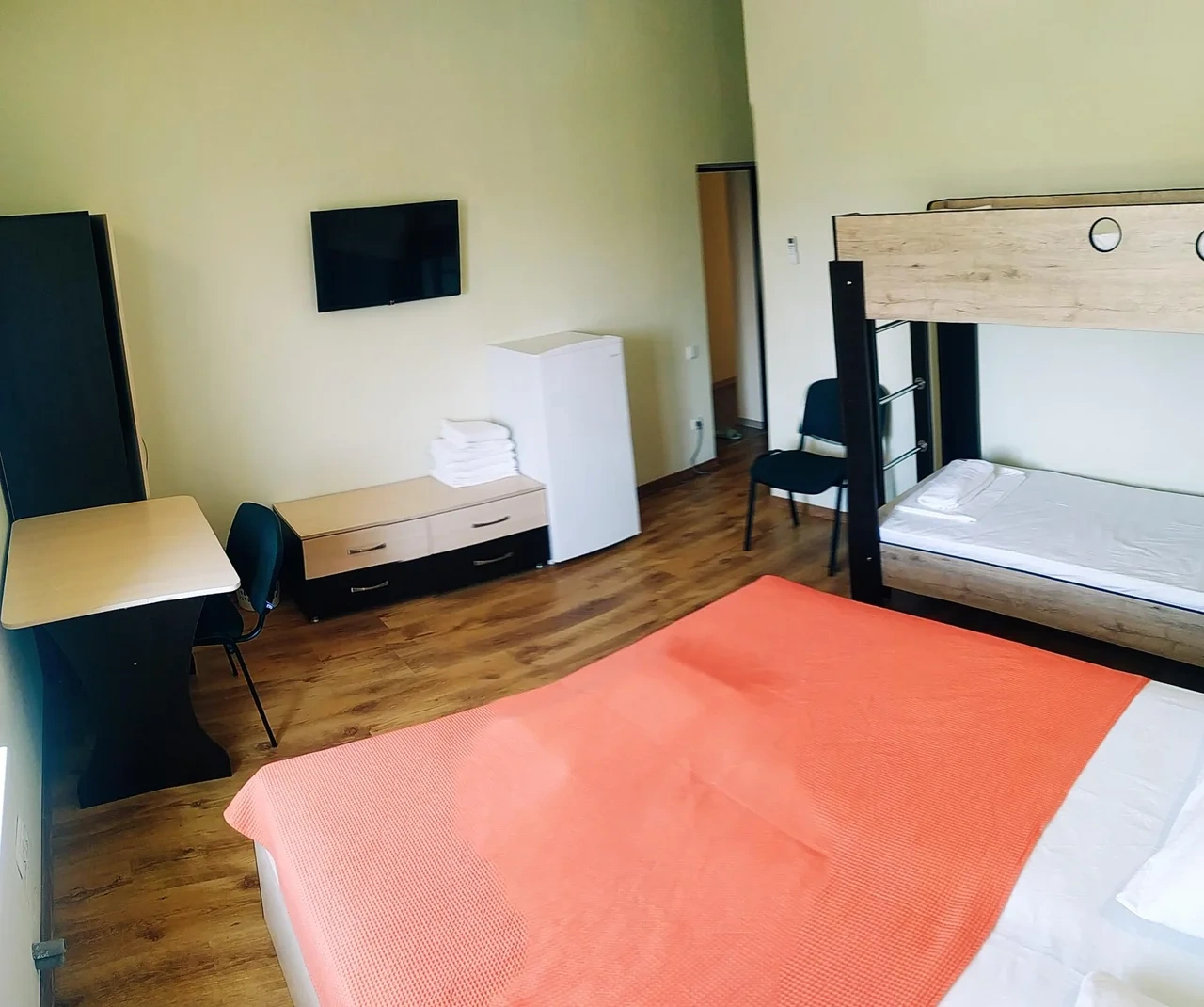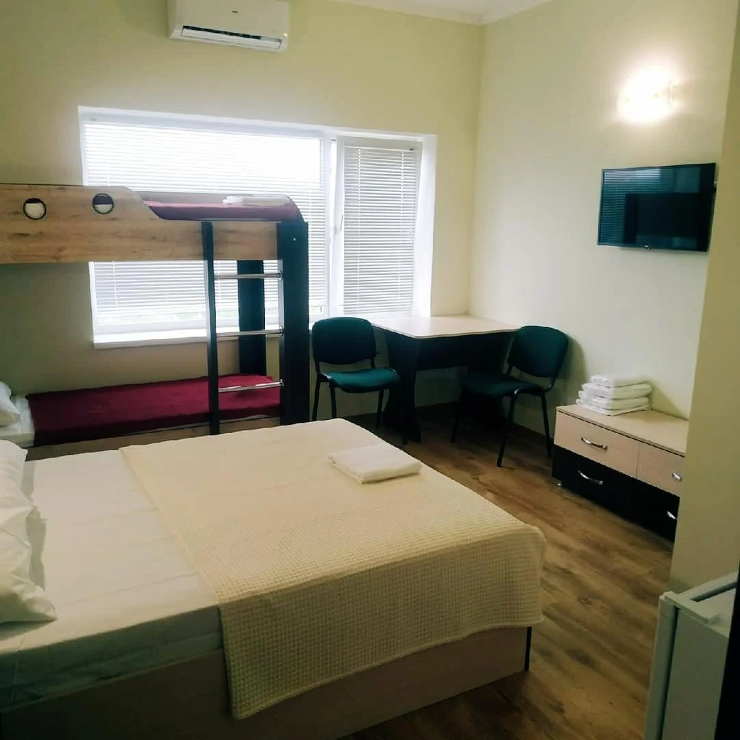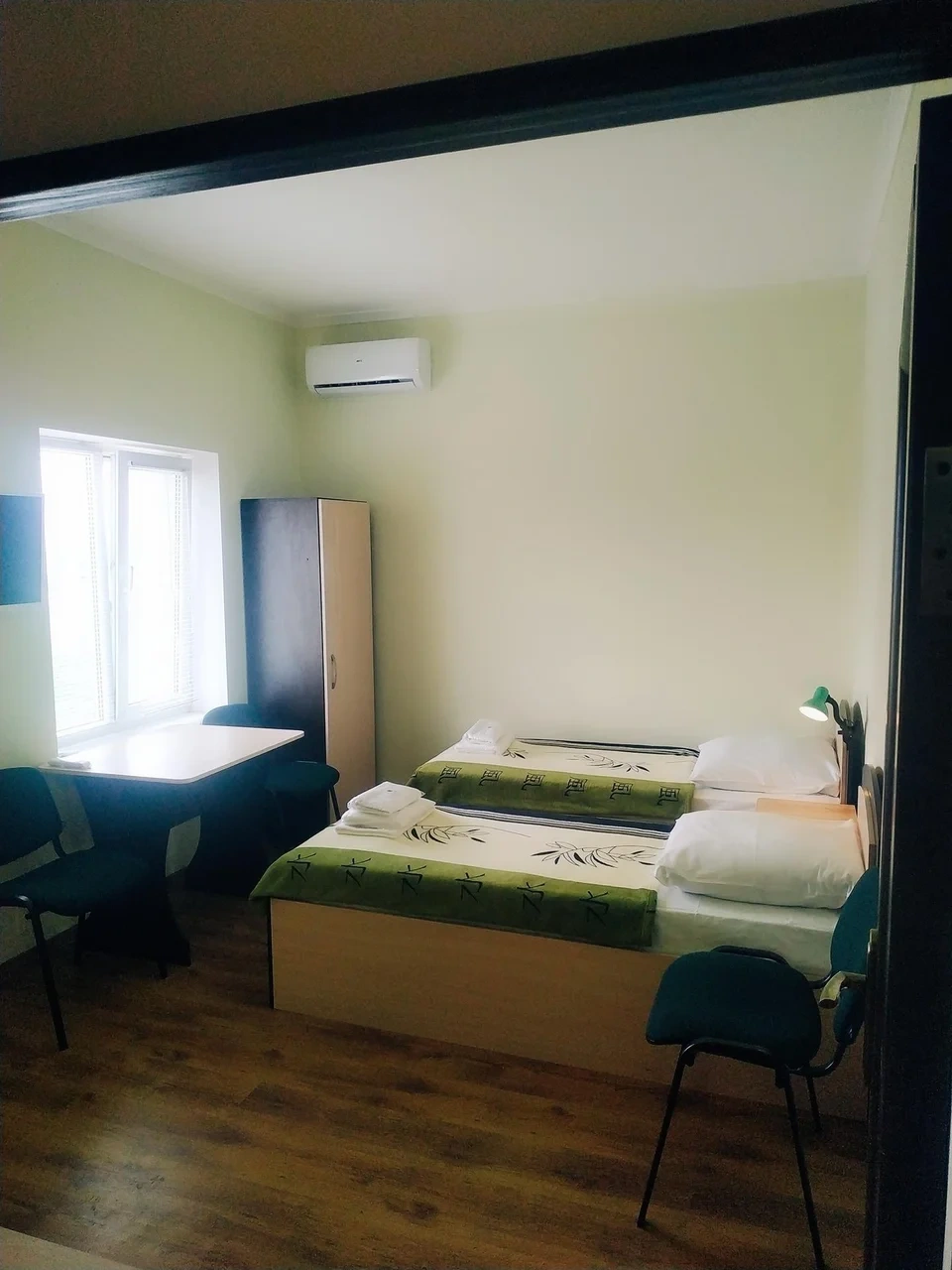 Трёхместный стандартный номер. В комнате имеется кондиционер, ЖК телевизор, WIFI, стол, шкаф, три односпальные кровати ( при необходимости можно доп место поставить). Постельное белье, полотенца входит в стоимость проживания.