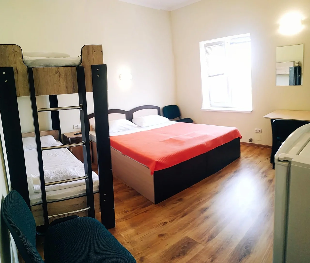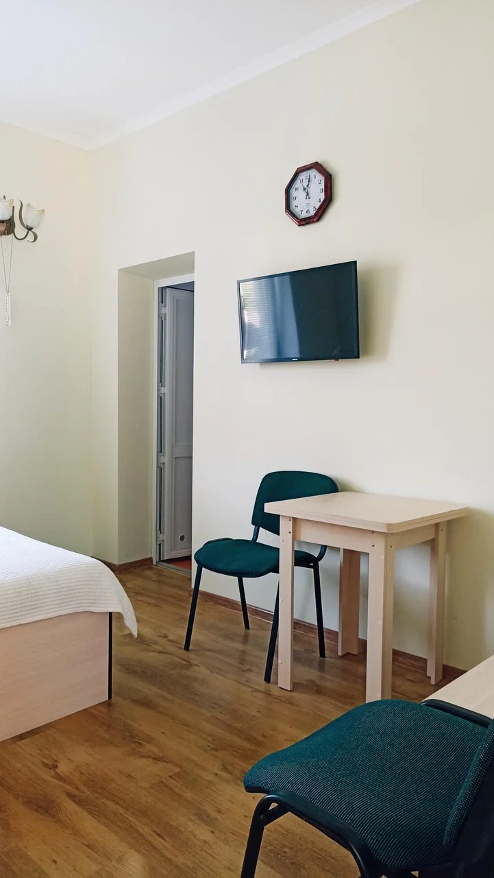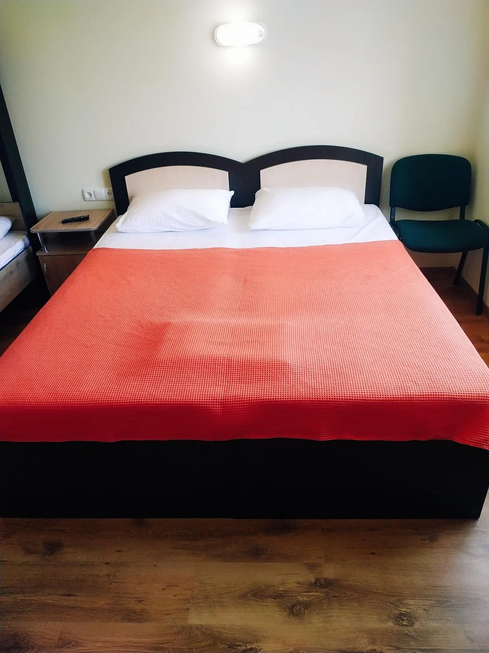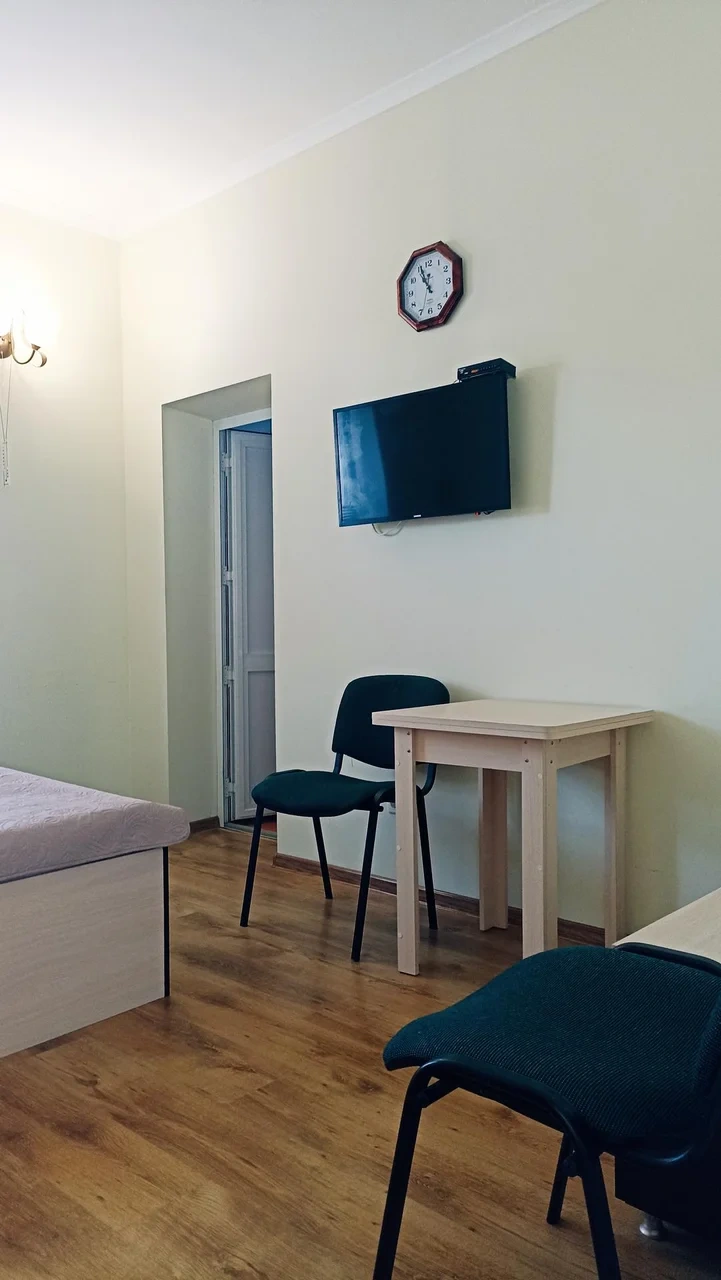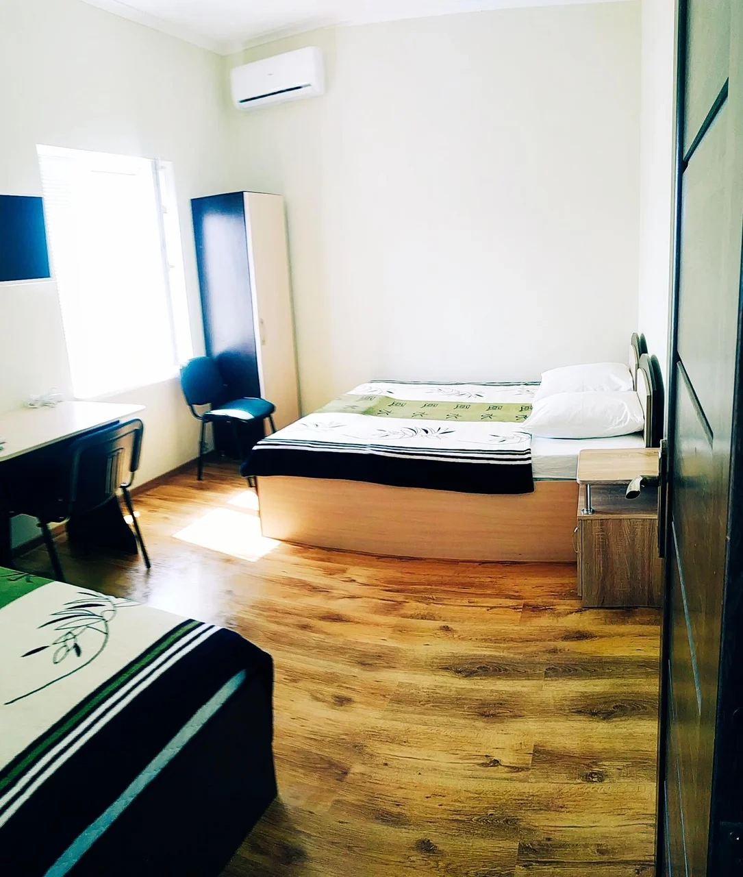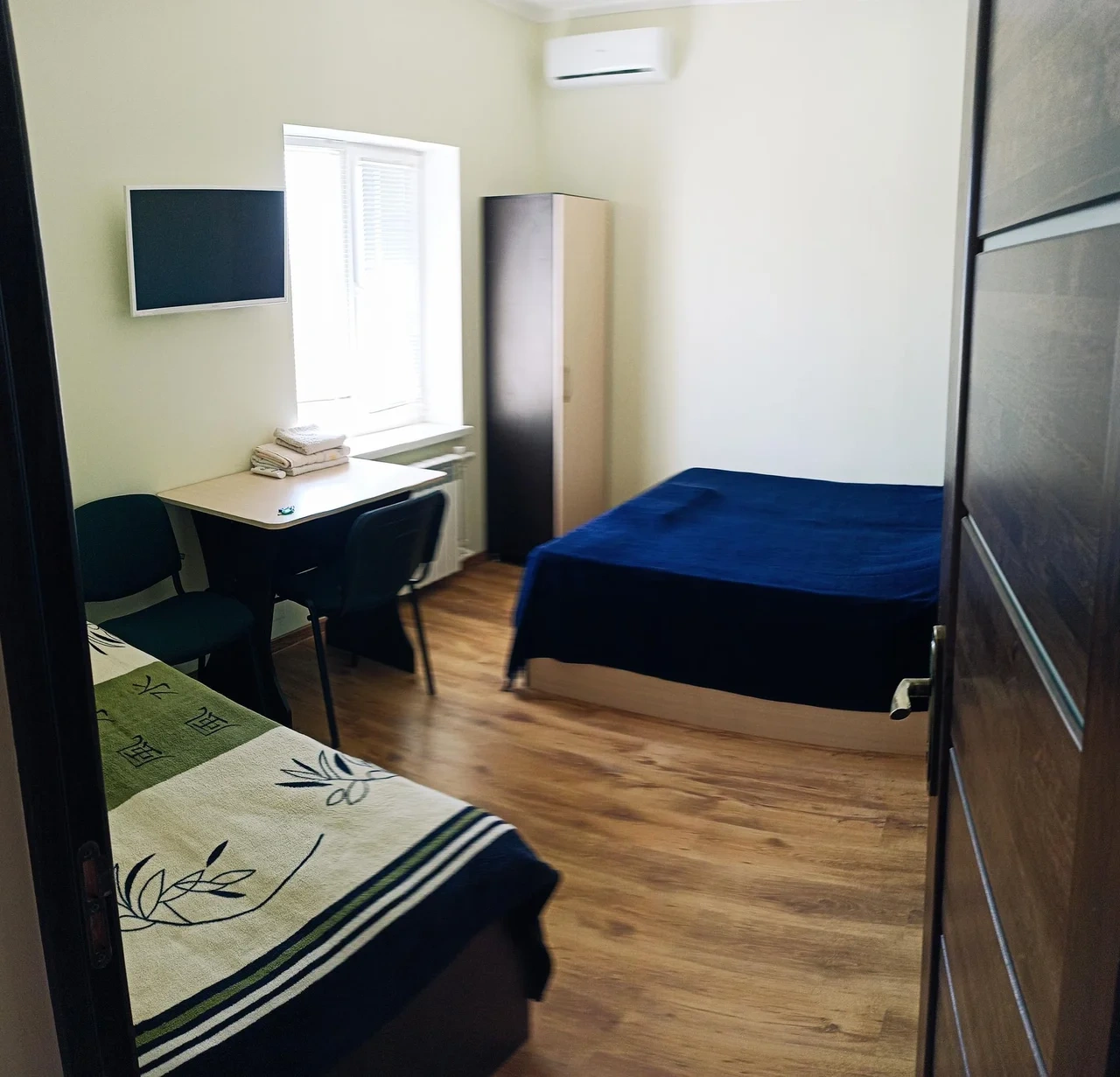 Трёхместный стандартный номер. В комнате имеется кондиционер, ЖК телевизор, WIFI, стол, шкаф, три односпальные кровати ( при необходимости можно доп место поставить). Постельное белье, полотенца входит в стоимость проживания.