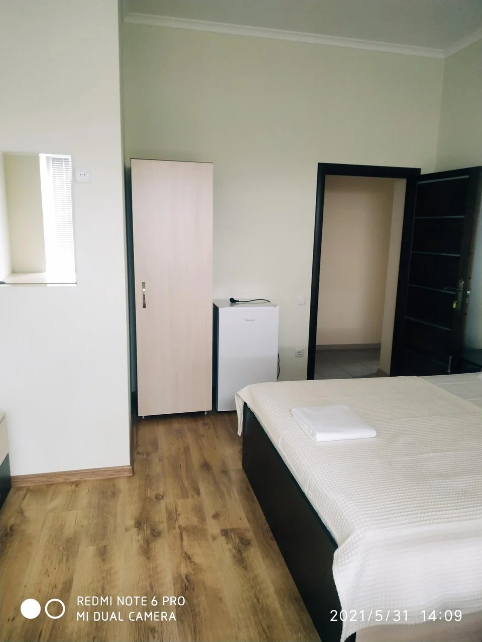 Номера новые, просторные, кровати большие и очень хорошие матрацы, спишь как младенец:), есть кондиционер ( но в номере прохладно, мы им не пользовались) телевизор, шкаф и стол, стулья.