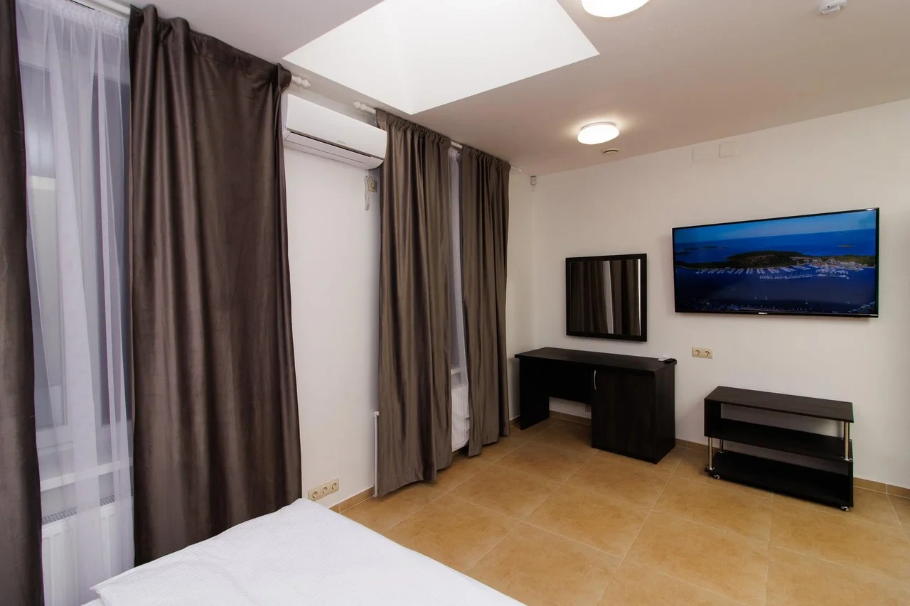 Новые номера в новых апартаментах Люди. Находятся в историческом центре города. В пешей доступности театры, музеи, набережная, банкоматы, магазины, кафе. В номере присутствует кондиционер,центральное отопление,телевизор, холодильник, электрочайник. Душ и санузел совмещены. В номере исключительно lamplight. На всей территории бесплатный Wi-Fi.