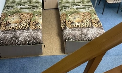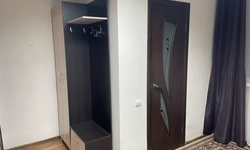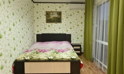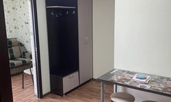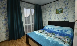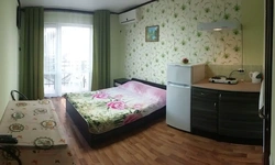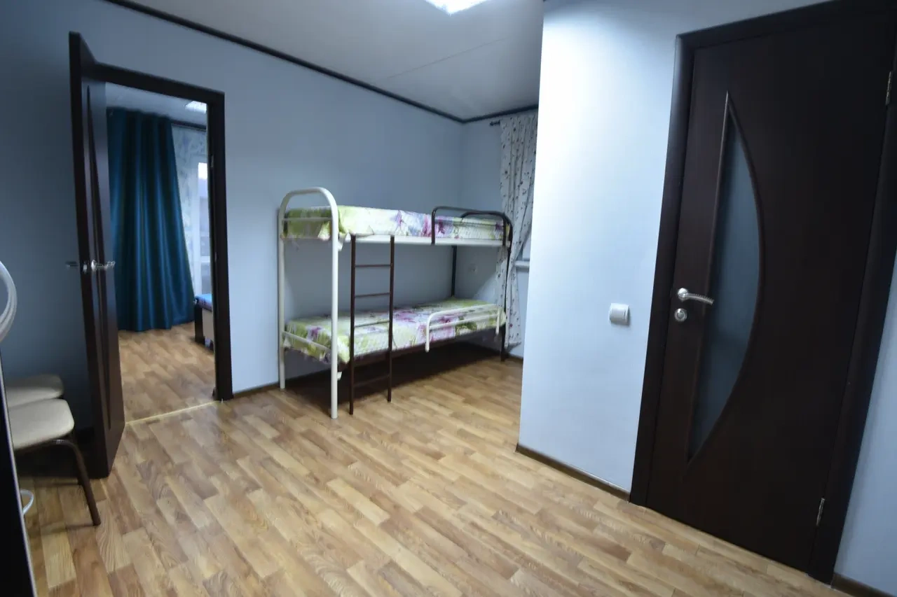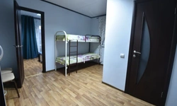 Размещение взрослых и детей в разных комнатах. Двуспальная кровать, тумбочка, шкаф, телевизор, сплит-система. В детской двухъярусная кровать. В номере холодильник, стол, санузел с душем, кухня, балкон