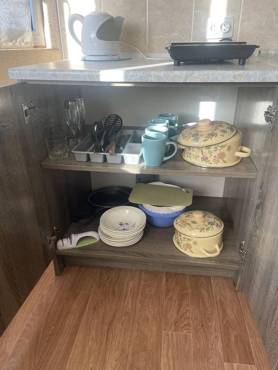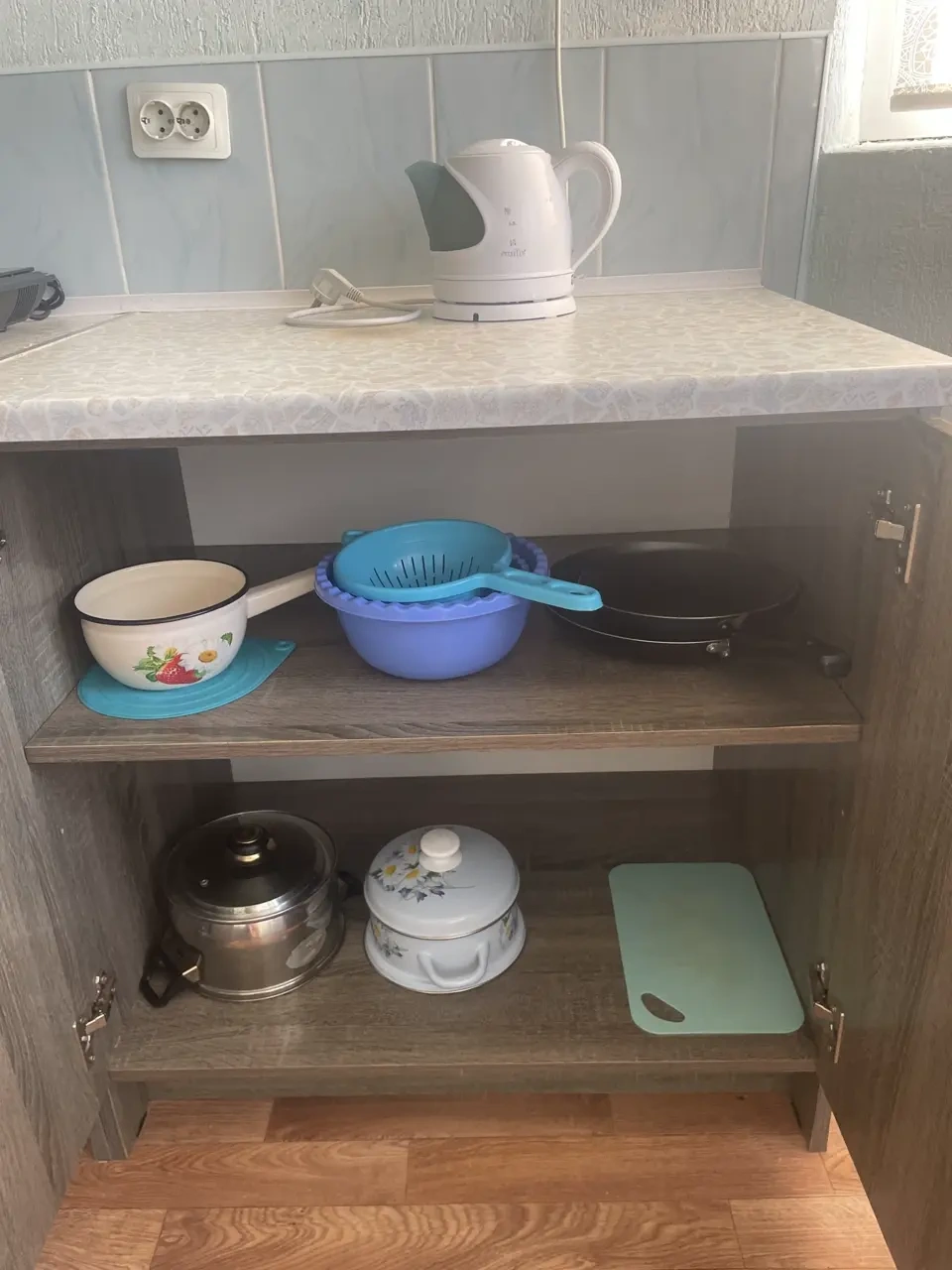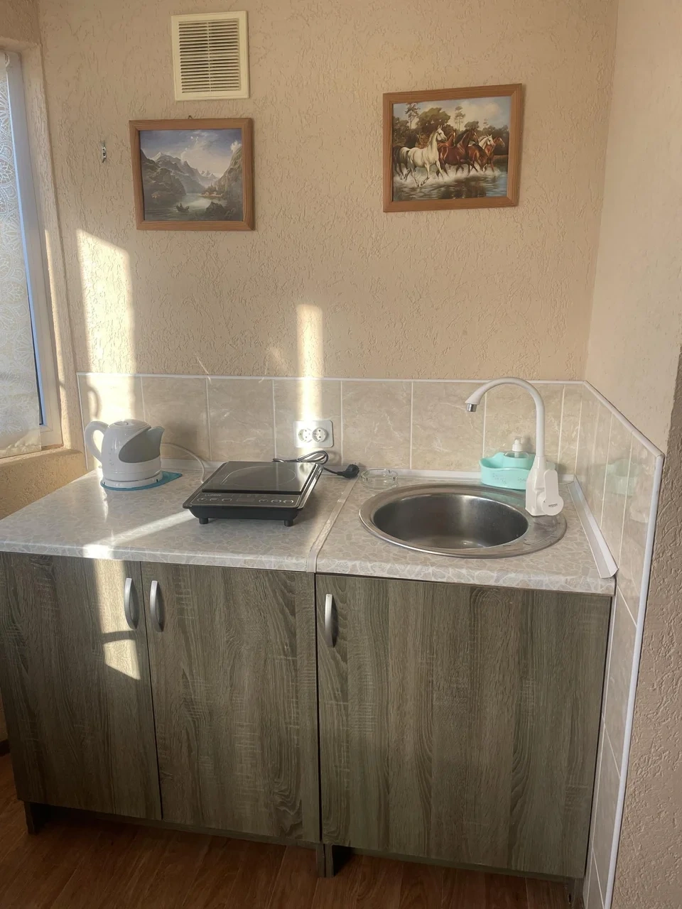 Номер на первом этаже, со всеми удобствами, имеется возможность приготовления пищи в мультиварке.