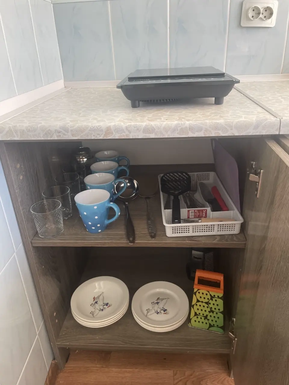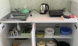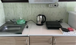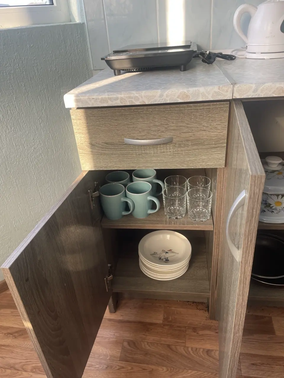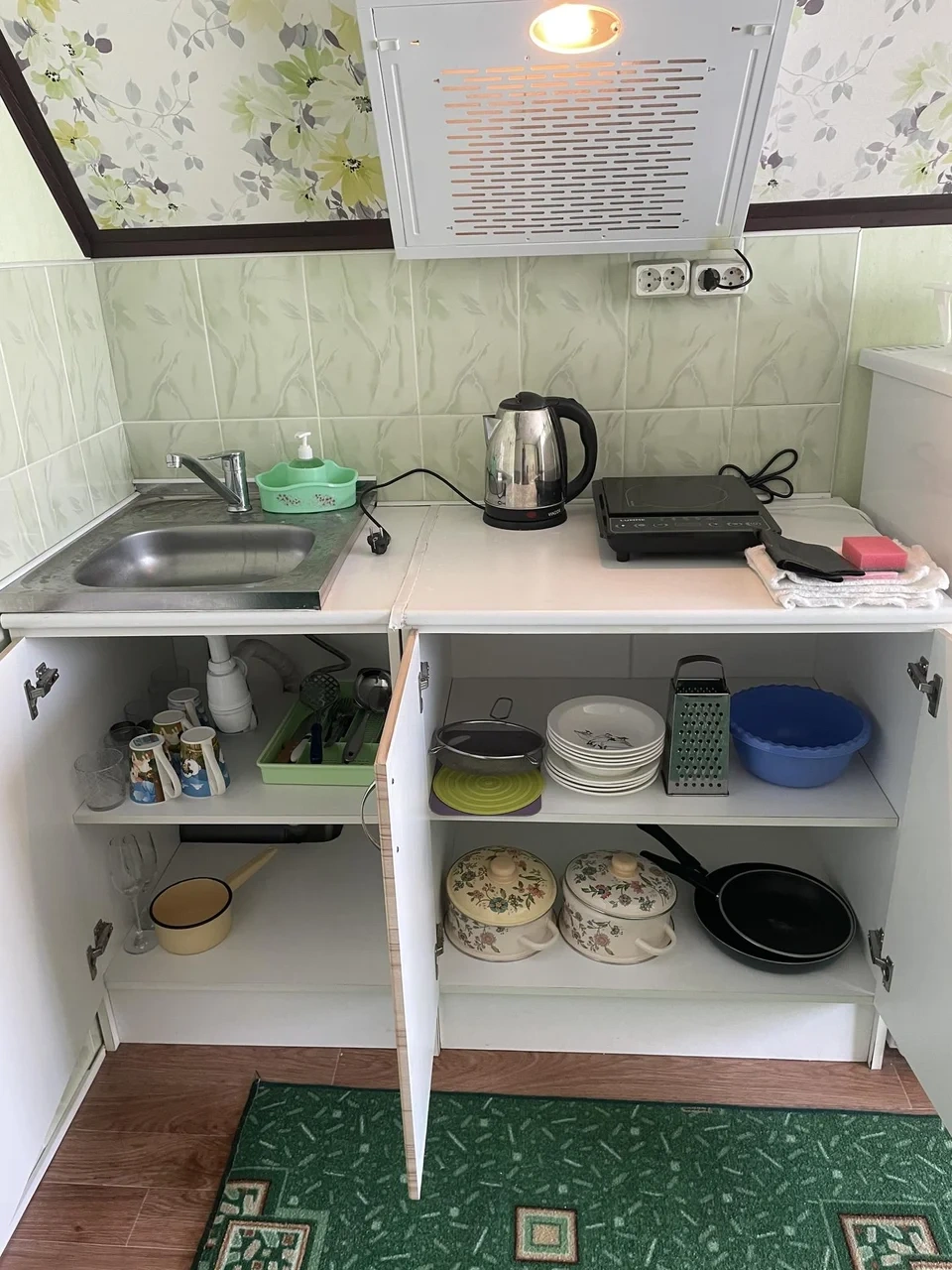 Номер на первом этаже, со всеми удобствами, имеется возможность приготовления пищи в мультиварке.
